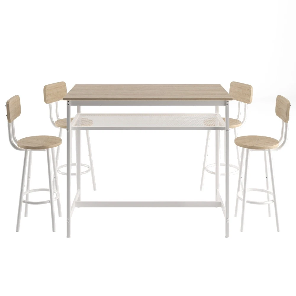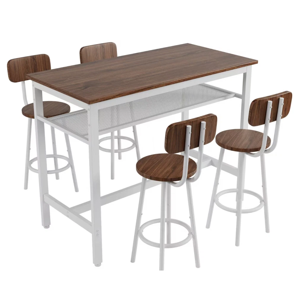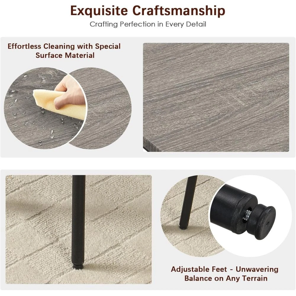 ✅ 1 YEAR WARRANTY & 30-DAY FREE RETURN GUARANTEE - Shop with confidence! We stand behind our product quality with a 1-year manufacturer warranty against defects. If you're not completely satisfied for any reason, enjoy a hassle-free 30-day free return policy. Upgrade your home dining space with our stylish and functional 5-piece counter height dining set! This antique grey set includes 1 compact bar table and 4 comfortable stools, designed to fit seamlessly into small apartments, kitchens, dining rooms, or home bars. Combining modern pub style with durable construction, it's ideal for family dinners, friend gatherings, or casual breakfasts. ✨ KEY FEATURES THAT STAND OUT Super Sturdy & Durable Construction - The tabletop is crafted from high-quality environmental MDF with precision edge technology, offering waterproof and scratch-resistant performance—effortless to clean with a damp cloth or mild detergent. Heavy-duty powder-coated steel legs ensure exceptional stability, while the table supports up to 176lbs and each stool holds an impressive 440lbs (way more than standard sets!). Space-Saving Design for Small Areas - Measuring 43.3"L x 23.7"W x 36.2"H, this compact set maximizes every inch of your space. When not in use, all 4 stools tuck neatly under the table—no more cluttered walkways! Perfect for studio apartments, cozy kitchens, or small dining nooks. Comfortable Seating Experience - Each stool features a wooden backrest for gentle support and a looped footrest that lets you relax comfortably. Under-seat crossbars reinforce stability (no wobbly stools!) and the integrated footrest brace keeps your feet at ease during long meals or conversations. Built-In Storage Solution - A handy mesh shelf under the table provides extra storage for books, chargers, napkin holders, or dining essentials—keeping your space organized and clutter-free. It's the little detail that makes daily use more convenient! Versatile for Any Occasion - More than just a dining set! Use it as a breakfast bar, home office desk, or a casual workspace. It also works great in commercial settings like small bars, bistros, or cafes. Accommodates 4-6 people—perfect for family meals or small get-togethers. Modern Style That Blends In - The sleek antique grey finish and simple pub design complement any home decor—from farmhouse to contemporary. Add a touch of elegance to your space while keeping a relaxed, inviting vibe. 📐 PRODUCT SPECIFICATIONS Item Details Set Includes 1 Table + 4 Stools (5 Pieces Total) Color Antique Grey Material High-Quality MDF Board & Heavy-Duty Steel Frame Table Dimensions 43.3"L x 23.7"W x 36.2"H (Assembled) Stool Dimensions 12.6"L x 12.6"W x 34.6"H Weight Capacity Table: 176lbs; Each Stool: 440lbs Total Weight 67lbs (Table: 32.2lbs; Single Stool: 7.5lbs) Packaging 1 Package (47.24"L x 27.40"W x 5.00"H, 69.5lbs) 🔧 EASY ASSEMBLY & MAINTENANCE No professional tools needed! This set assembles in just 20 minutes —we include clear instructions, all necessary accessories, and tools. The waterproof, scratch-resistant tabletop and smooth stool surfaces are a breeze to clean: simply wipe with a damp cloth or mild detergent to keep them looking like new. 🏡 WHY CHOOSE OUR DINING SET? Whether you're enjoying a quiet breakfast, hosting a game night with friends, or working from home, this 5-piece set adapts to your needs. Its durable construction ensures long-lasting use, while the modern design elevates any space. Plus, our 1-year warranty and 30-day free return policy give you total peace of mind! SHIPS FAST in 1 package—get your new dining set delivered quickly to start enjoying better meals and gatherings!