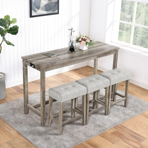 Bar Table Set with Power Outlet, Bar Table & Chairs Set,4 Piece Dining Table Set