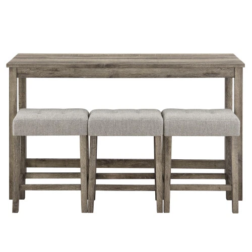 Solid Wood Rustic 3-piece 45" Stationary Kitchen Island Set with 2 Seatings 470.95 USD Free shipping Product Description Specification Product Information Product Type: General Item Product Name: Bar Table Set with Power Outlet, Bar Table and Chairs Set, 4 Piece Dining Table Set, Industrial Breakfast Table Set, for Living Room, Dining Room, Game Room,OLD SKU W1781110632 Main Color: Brown Main Material: Solid Wood+MDF Product Dimensions Assembled Length (in.): 59.00 Assembled Width (in.): 20.00 Assembled Height (in.): 35.50 Weight (lbs.): 78.00 Package Size Length (in.): 62.50 Width (in.): 24.75 Height (in.): 7.00 Weight (lbs.): 94.16 Product Features 1.Exquisite appearance:Industrial dining table: This bar table and chair features a high-quality imitation wood grain surface, making it an excellent addition to your kitchen, gaming room, or living room. Space saving and perfect fit: Three 18 "long x 11" wide x 24.25 "high bar stools can fit perfectly under the table when not in use, maximizing space while maintaining aesthetics. Foot mats not only increase stability but also prevent floor scratches. 2.Ergonomic stools and durable materials: The stools are equipped with Tactile soft fabric and curved cushions, providing comfort and relaxation even when sitting for a long time. Made of high quality MDF and high elasticity foam. In addition, solid wood and PVC veneers have scratch resistance and are easy to clean. 3.Easy to assemble: All hardwares and accessories are provided. It comes with easy-to-follow instructions. 4.Package design:The ISTA 3A packaging standard has undergone rigorous drop testing and detection, greatly avoiding the risk of product damage during later transportation Description Product details Table Product Size 59"*20"*35"H Inch Table material Table top:MDF Table leg:plywood+rubber wood Chair Product Size 18"*11"*24.25"H Inch Chair material Solid wood+High resilience foam+Linen Total net weight 79.2 Lbs Total gross weight 94.6 Lbs Notice Due to lighting or monitor display, the color of the actual product may be slightly different from the image. Manual measurement is used, there may be some reasonable errors. About Us Shipping Returns Contact Us 1.If you like our Product,Service,Delivery Time,Free Postage, please leave us a 5 Stars Positive Feedback! 2.Please feel free to contact us if you have any questions before you leave a (Neutral or Negative) feedback! We will try our best to solve the problem and make you satisfied. Thank you so much and have a nice day! We ONLY ship to USA . Orders processed within 24-48 hours of payment verification. Before buying, Please make sure your ebay address is correct. Or not, please correct it before payment. We are very sorry we do not support combine postage. If you have not received your shipment within 15 days from payment, please contact us. We will track the shipment and get back to you as soon as possible with a reply. Our goal is customer satisfaction! Due to stock status and time differences, we will choose to ship your item from our first available warehouse for fast delivery. Delivery Time: Ship from USA via UPS or Fedex, about 5-10 days for the shipping time. Return is accepted within 30 days after the buyer's receiving the item. If this item is defective upon receipt, customer has up to 30 days from date of receipt for exchange of a new one. If you are not completely satisfied with your purchase, you may return it to us for a prompt exchange or we will refund your payment. Unused/unopened merchandise will be fully credited. Please note that all purchases must be returned within 30 days of purchase. NO return or exchange will be accepted after 30 days from the date of purchase. After getting the returned item, we will refund the customer at the item's price ( excluding the shipping costs to and fro ). 1.Customer is always NO.1 2. All selling products are brand new, never been used and not refurbished 3. We care about our valued customers and understand the concerns and frustrations you might have, and we will try our best to resolve the issues. About Us 1.If you like our Product,Service,Delivery Time,Free Postage, please leave us a 5 Stars Positive Feedback! 2.Please feel free to contact us if you have any questions before you leave a (Neutral or Negative) feedback! We will try our best to solve the problem and make you satisfied. Thank you so much and have a nice day! Shipping We ONLY ship to USA . Orders processed within 24-48 hours of payment verification. Before buying, Please make sure your ebay address is correct. Or not, please correct it before payment. We are very sorry we do not support combine postage. If you have not received your shipment within 15 days from payment, please contact us. We will track the shipment and get back to you as soon as possible with a reply. Our goal is customer satisfaction! Due to stock status and time differences, we will choose to ship your item from our first available warehouse for fast delivery. Delivery Time: Ship from USA via UPS or Fedex, about 5-10 days for the shipping time. Returns Return is accepted within 30 days after the buyer's receiving the item. If this item is defective upon receipt, customer has up to 30 days from date of receipt for exchange of a new one. If you are not completely satisfied with your purchase, you may return it to us for a prompt exchange or we will refund your payment. Unused/unopened merchandise will be fully credited. Please note that all purchases must be returned within 30 days of purchase. NO return or exchange will be accepted after 30 days from the date of purchase. After getting the returned item, we will refund the customer at the item's price ( excluding the shipping costs to and fro ). Contact Us 1.Customer is always NO.1 2. All selling products are brand new, never been used and not refurbished 3. We care about our valued customers and understand the concerns and frustrations you might have, and we will try our best to resolve the issu