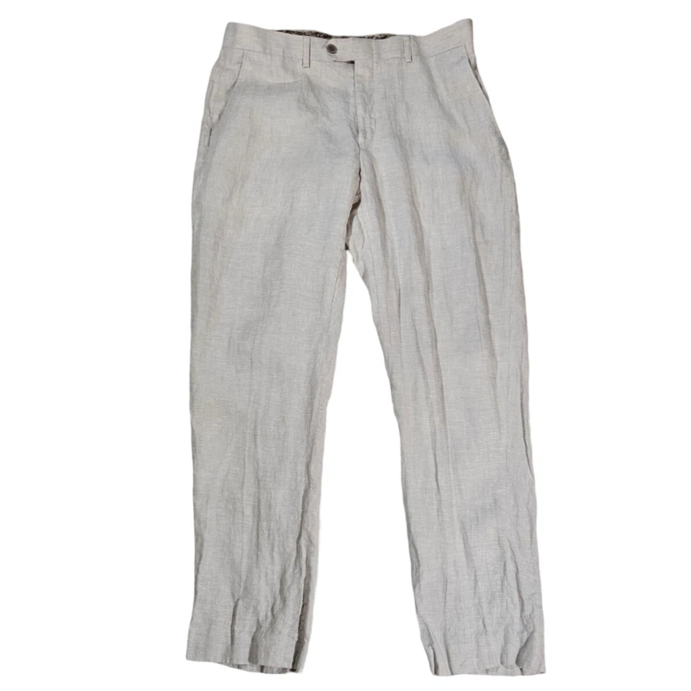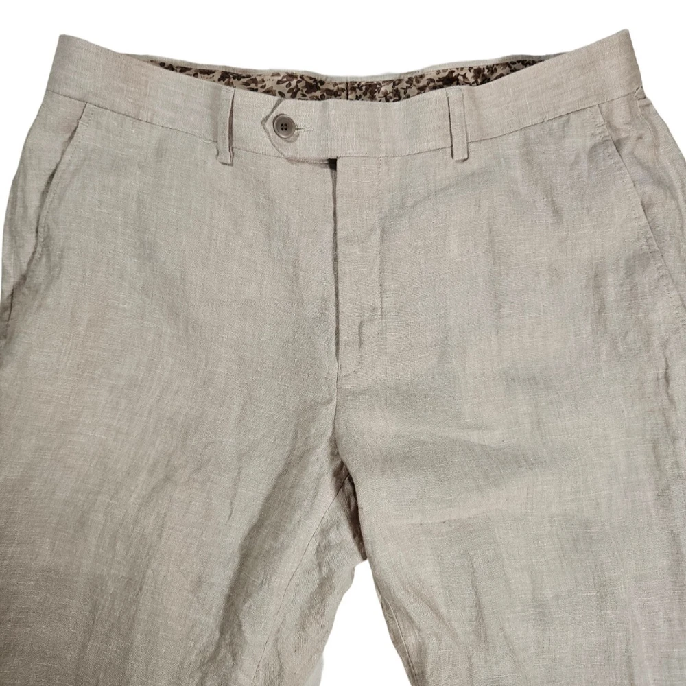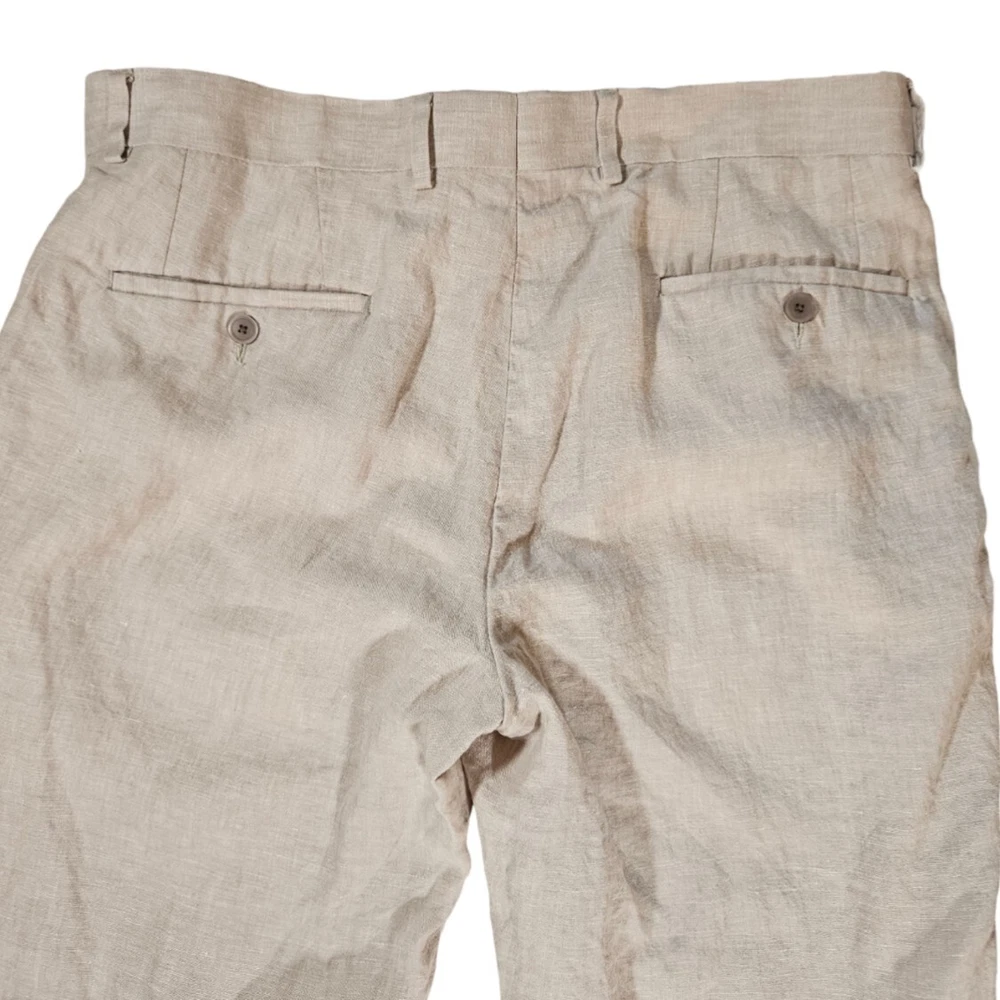 These Are In Excellent Condition, Slash Pockets In Front, 2 Back Button Closure Pockets, Zip Fly With Button And Hook Closure, Flat Front, Natural Linen, Lined Pockets