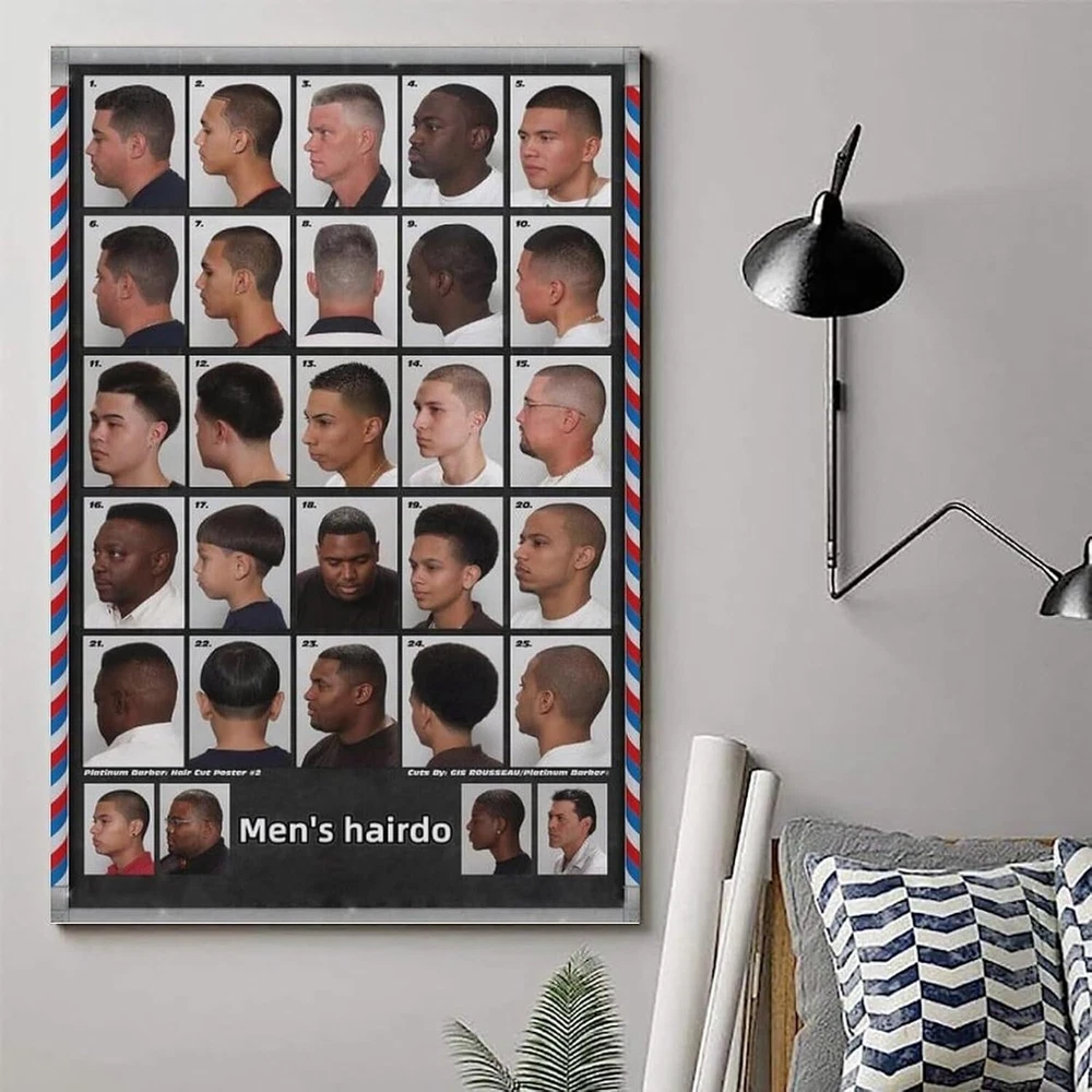 Barber Shop Hair Salon Men's Hairstyle Guide Poster Bedroom Wall Decor Wall Art