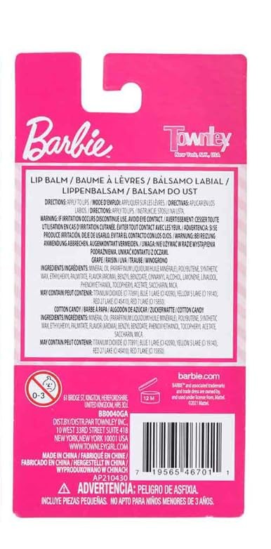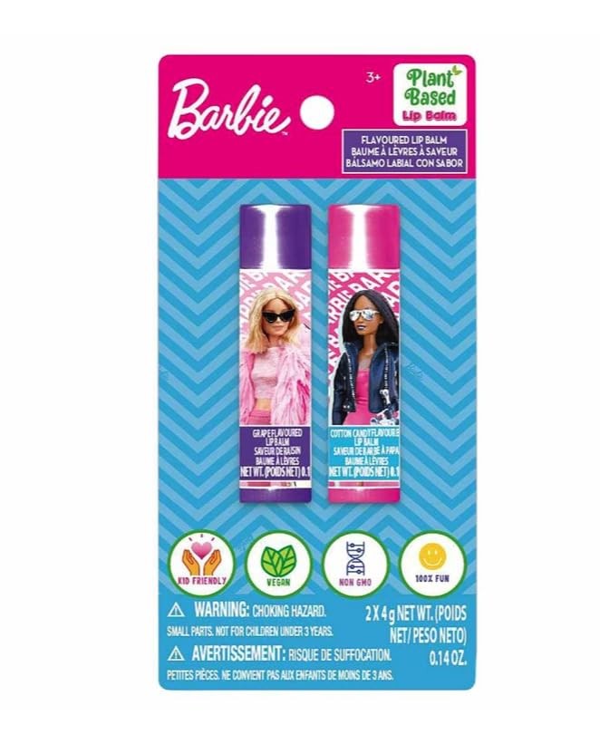 Barbie 2 Pack Lip Balms Cotton Candy & Grape Girls Stocking Stuffers
