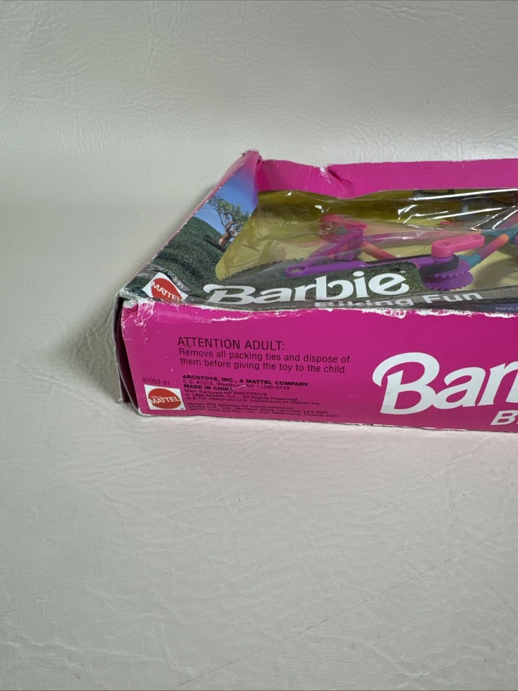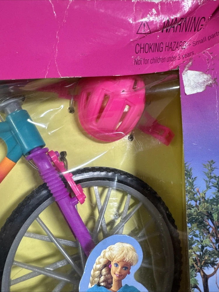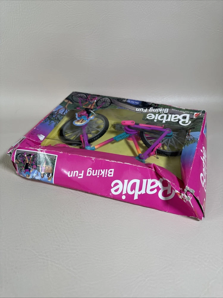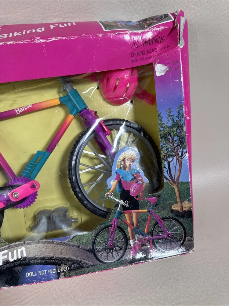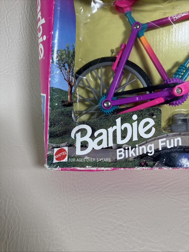 The Barbie Biking Fun Bicycle & Helmet 1995 Mattel 67053-91 is a vintage doll accessory from Mattel that includes a bicycle and helmet designed for Barbie dolls. This 1995 release captures the adventurous spirit of Barbie and allows her to take a ride on a cute and colorful bicycle. Perfect for collectors or for adding a touch of nostalgia to any Barbie enthusiast's collection, this set is a charming piece of Barbie memorabilia. Pre-owned condition. Never been used or removed from original box. Box has damages. The bike has excellent condition without any damages. Set doesn’t include the doll. Bike only with accessories. Please check the pictures carefully as part of the description. Feel free to ask questions if you need more information before you buy it. Thank you for your interest G-5