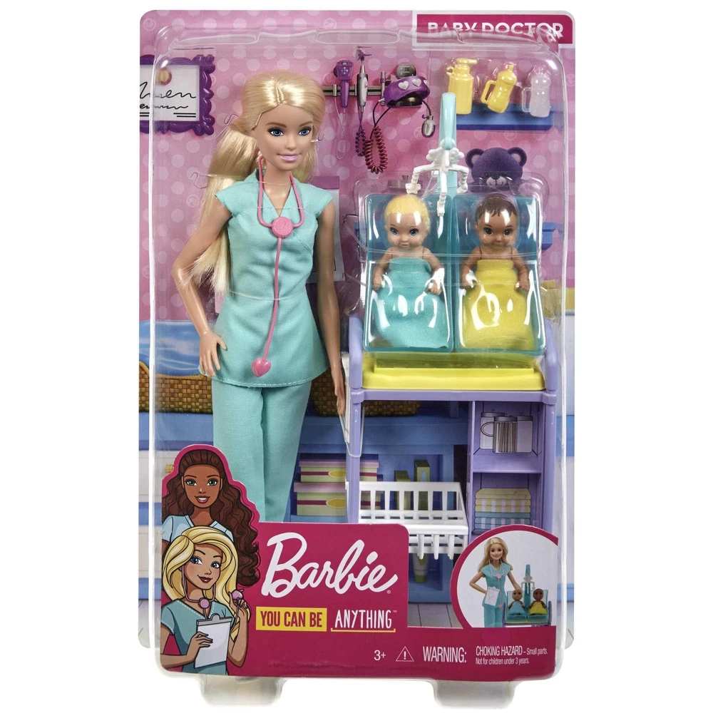 Barbie Careers Doll & Playset, Baby Doctor Theme with Blonde Fashion Doll, 2 Baby Dolls, Furniture & Accessories Product Overview Style: Blonde Baby Doctor Explore a world of caretaking fun with the Barbie Baby Doctor playset! When a girl plays with Barbie, she imagines everything she can become, and if you love taking care of babies, you can be a baby doctor! This playset includes a baby doctor environment featuring the Barbie Baby Doctor doll and her adorable baby doll patients! Baby doctors are kind and smart and help babies stay happy and healthy. This playset features a stand-alone examination table with lotion bottle and other accessories, an overhead mobile and two compartments for the baby doll patients. Barbie Baby Doctor doll can listen to the babies' heartbeats with her stethoscope and note it down on her chart. They are doing great! Playset includes the Barbie Baby Doctor doll wearing light green 'scrubs,' with her stethoscope and chart, and 2 baby doll patients each wrapped in cozy blankets. Toy play items include: the examination table with lotion bottle and other accessories, overhead mobile and clear compartments for the baby doll patients. Kids will love the endless possibilities for creative expression and storytelling fun! Doll cannot stand alone. Colors and decorations may vary. For ages 3 and up. Features You can be a baby doctor with the Barbie Baby Doctor playset! Includes baby doctor environment with Barbie Baby Doctor doll, 2 adorable baby doll patients and toy play pieces for examinations and caretaking. Wearing light green 'scrubs,' and with a stethoscope around her neck, Barbie Baby Doctor doll is ready to take care of her baby doll patients. Barbie notes in her chart: the babies are doing great! Toy play items include an examination table with lotion bottle and other accessories, overhead mobile and clear compartments for the 2 baby doll patients. Explore a world of creative play and storytelling fun with the Barbie Baby Doctor Playset! Makes a great gift for kids 3 years old and up, especially those interested in medicine and caretaking! Doll cannot stand alone. Details Item Weight: 0.62 Pounds Number of Pieces: 1 Item Dimensions: 2 x 3.7 x 10.5 inches Size: Standard Global Trade Identification Number: 62 Subject Character: Barbie Sub Brand: Mattel UPC: 887961827262 Brand Name: Barbie Included Components: Barbie Baby Doctor Playset includes Blonde doll, 2 baby doll patients and toy pieces: examination table with lotion bottle and other accessories, overhead mobile and clear compartments for the baby doll patients. For ages 3 and up. Age Range Description: 3 years and up Theme: Baby Doctor Playset with Blonde Doll Color: Blonde Material Type: Plastic Quality Products Have peace of mind knowing that your order will arrive original factory sealed packaging. That means that you'll have the full force of the manufacturer's warranty to protect your purchase. Fast and Free Shipping You're already purchasing the item. Why pay additional for shipping, especially slow shipping? We get your order shipped out and delivered to your doorstep as quickly as possible. Commitment We are committed to making sure that you leave this transaction satisfied. That means having access to real people that get your questions and concerns answered quickly. Give us a shot and we will make sure that you will look to us again!