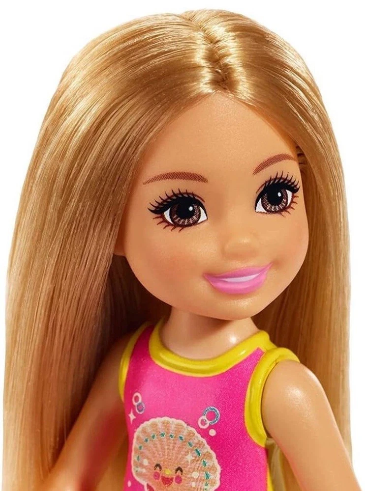 Rare find!!! Lot of 4 (1 doll 3 fashion packs) Barbie Mattel GLN70 Beach Doll Chelsea in Shell Design Blonde hair Blue eyes. Swim suit is not removable Barbie Chelsea Birthday Themed Fashion Pack Shipping costs includes supplies plus postage