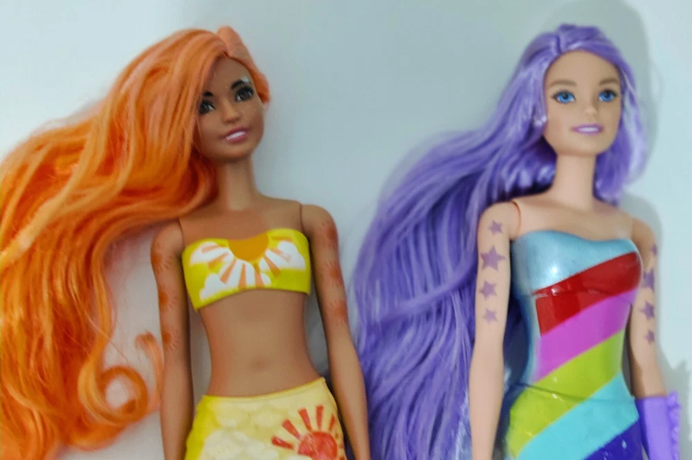 Dive into a world of enchantment with the Barbie Color Reveal Mermaid Doll, a dazzling addition to any collection that celebrates the magic of sea life. This Barbie, part of the vibrant Color Reveal Mermaid series, comes adorned in a mesmerising rainbow of colours, reflecting the joy and wonder of undersea adventures. With three hairstyles - curly, straight, and varied - she is a versatile companion for all occasions. ensuring a rich play experience without the need for additional purchases. Designed with children aged 3 to 18 years in mind, this doll is crafted from durable plastic, metal, and hard plastic, guaranteeing lasting play. The HCC46 model number ensures you're getting an authentic product straight from the 2021 original release, ready to spark imagination and bring the ocean's charm to your home.