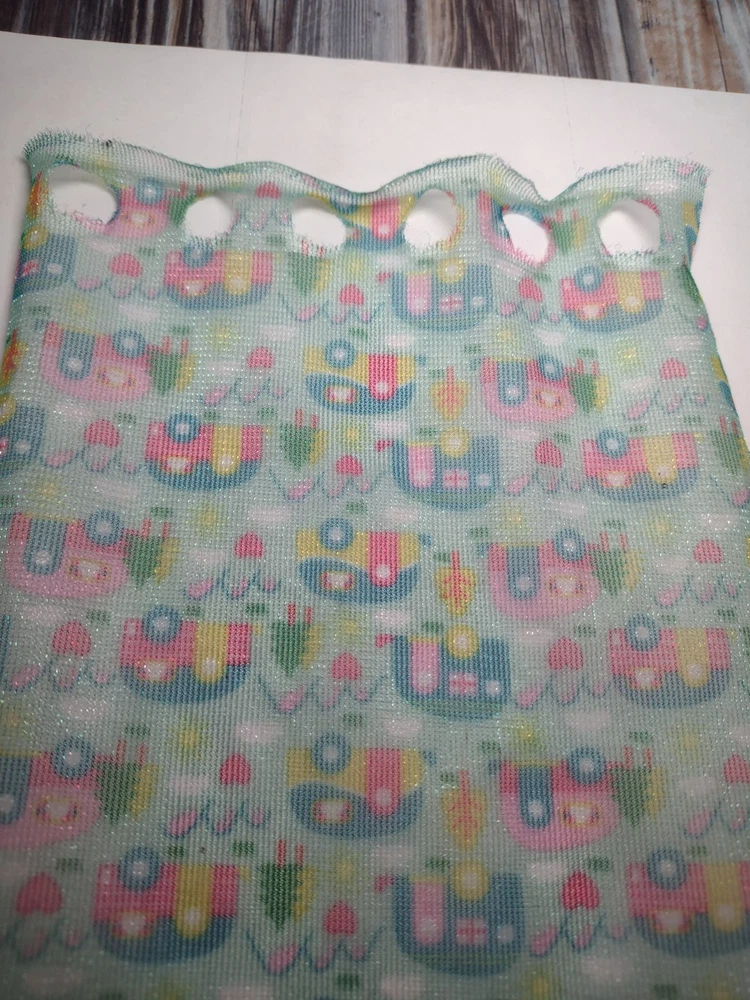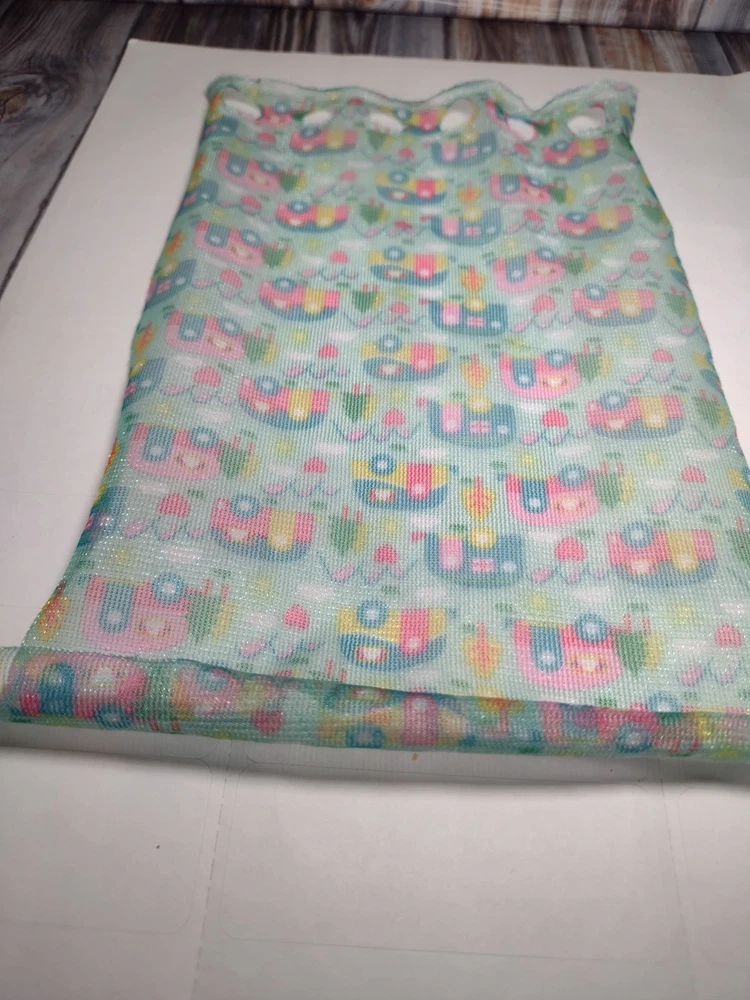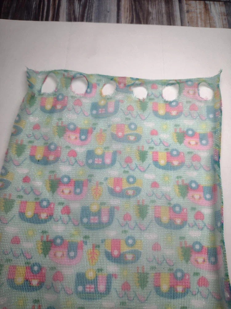 Pre-owned normal wear this replacement is from a mattel Barbie recreational vehicle. Print is unique different campers printed upside down on sheer shower curtain. Holes where Barbie goes through have wear however no tears or major damage. Sold as shown no exchanges or returns. Please see photos for condition of items. Please message me if you have any questions.Thank you for visiting my store.