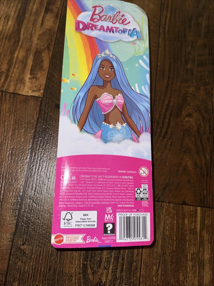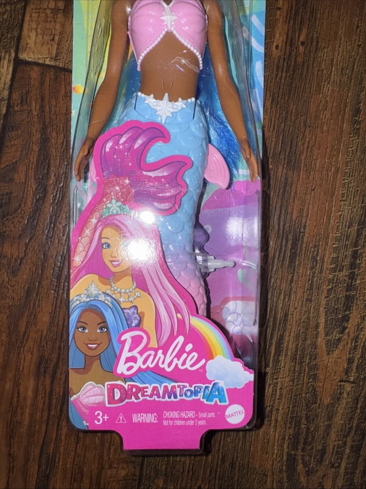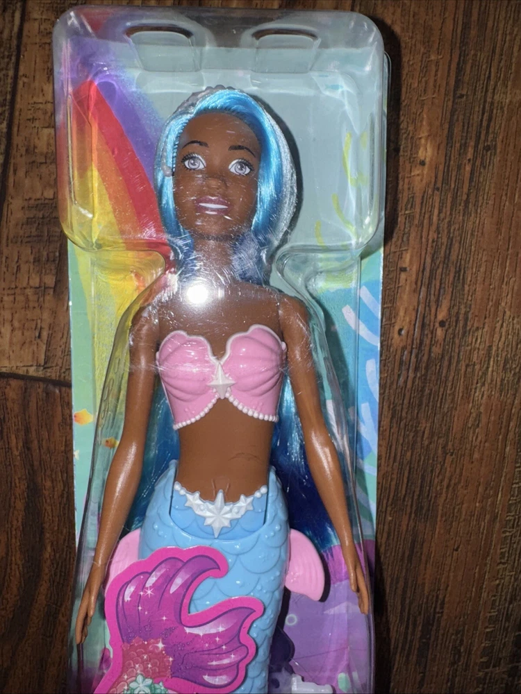 Dive into a world of fantasy and glamour with the Barbie Dreamtopia Mermaid Doll. Sporting an eye-catching blue hair color and a majestic mermaid tail in pink and blue, this 11-inch fashion doll is a stunner. She's dressed to impress in her original, unopened packaging, mirroring the elegance of the Barbie brand. Crafted with care by Mattel, this doll is part of the beloved Barbie Dreamtopia product line, celebrating fashion and beauty. The African American character embodies the spirit of the franchise with her straight hair, signature Barbie charm, and the timeless theme of exploration and adventure that Barbie represents.
