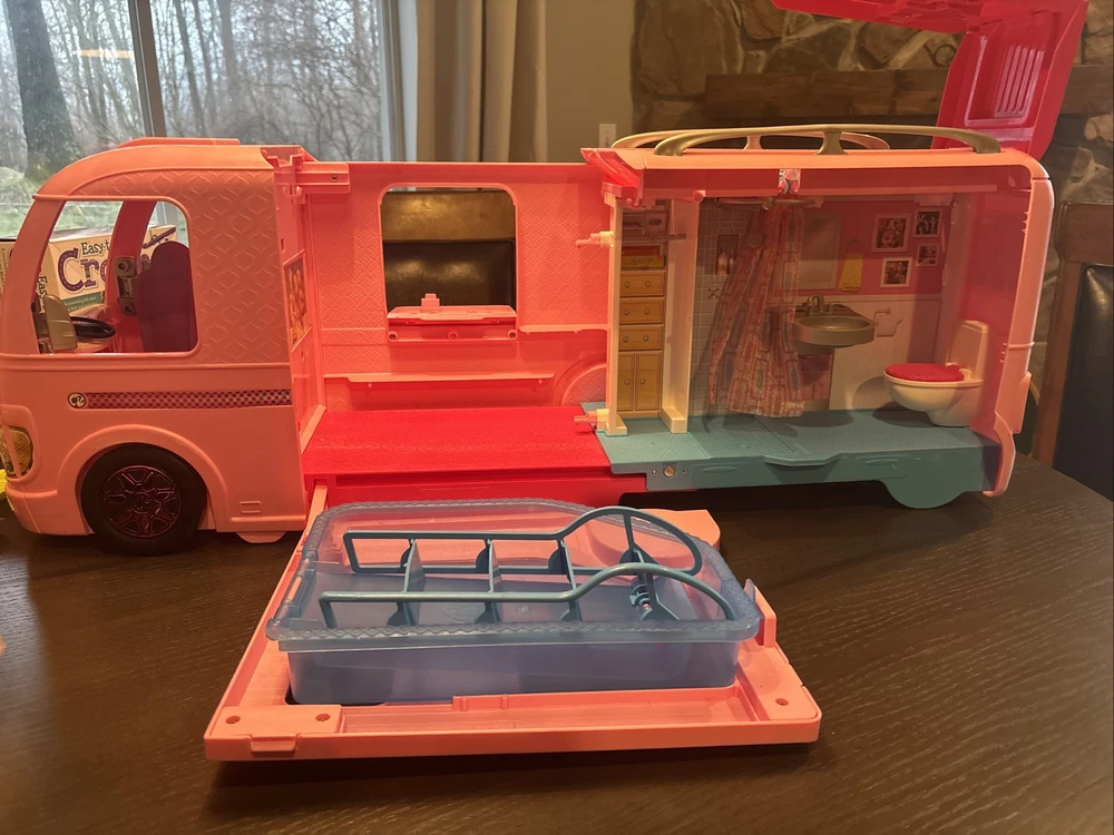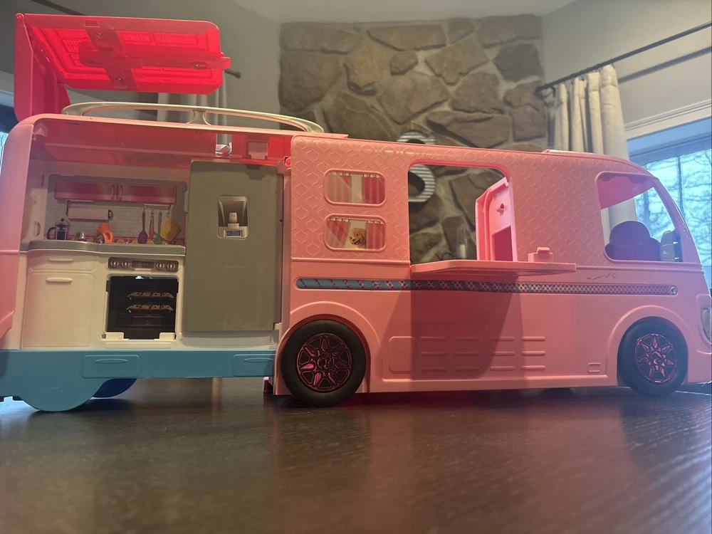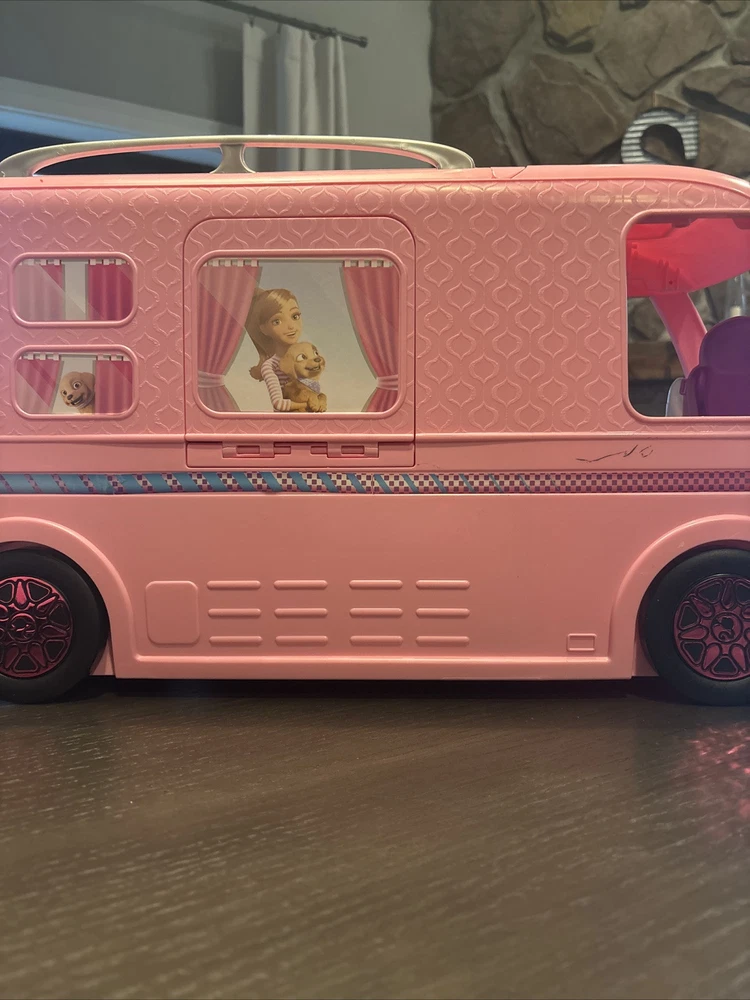 Vehicle Type: Camper Character: Barbie Material: Plastic Antique: Yes Handmade: Yes Type: Vehicle Doll Type: Dollfie & BJD Brand: Mattel Color: Pink UPC: 0887961439502 Year Manufactured: 2019 Vintage: No Age Level: 3 Years & Up Original/Licensed Reproduction: Original MPN: FBR34 gtin13: 0887961439502 Features: Gift Set, Antique, Articulated, Interactive, DreamCamper, Battery-Operated, Anatomically Correct, Ball Jointed Doll (BJD), Model Muse Body, Handmade