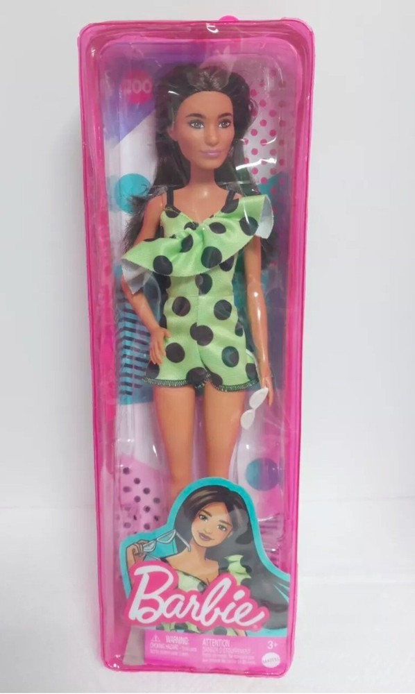 Doll Complexion: Medium Doll Hair Color: Brown Set Includes: Doll Doll Gender: Girl Doll Material: Plastic Doll Eye Color: Brown Unit of Sale: Single Unit Product Line: Fashionistas Doll Hair Type: Straight Type: Fashion Doll Occasion: All Occasions Features: Polka Dot Romper MPN: HJR99 Doll Age Group: Adult, Teens, Youth Country/Region of Manufacture: Indonesia Original/Licensed Reproduction: Original Doll Size: 11 in Packaging: Original (Unopened) Brand: Mattel UPC: 194735093984 Vintage: No Ethnicity: Hispanic/Latino gtin13: 194735093984 Antique: No Character: Teresa Theme: Fashion & Beauty Franchise: Barbie Year Manufactured: 2023 Time Period Manufactured: 2020-Now