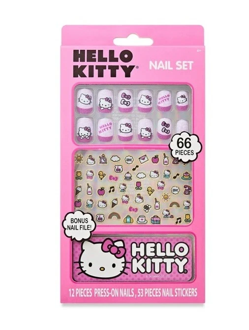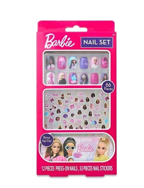 This press-on nail bundle includes three popular characters: Barbie, Frozen, and Hello Kitty. Each set features 66 pieces: press-on nails, stickers and a file, perfect for dress-up and pretend play. The nails are designed with intricate details and vibrant colors that will surely catch your little one's attention. The nails are easy to apply and remove, making it a hassle-free experience for parents.