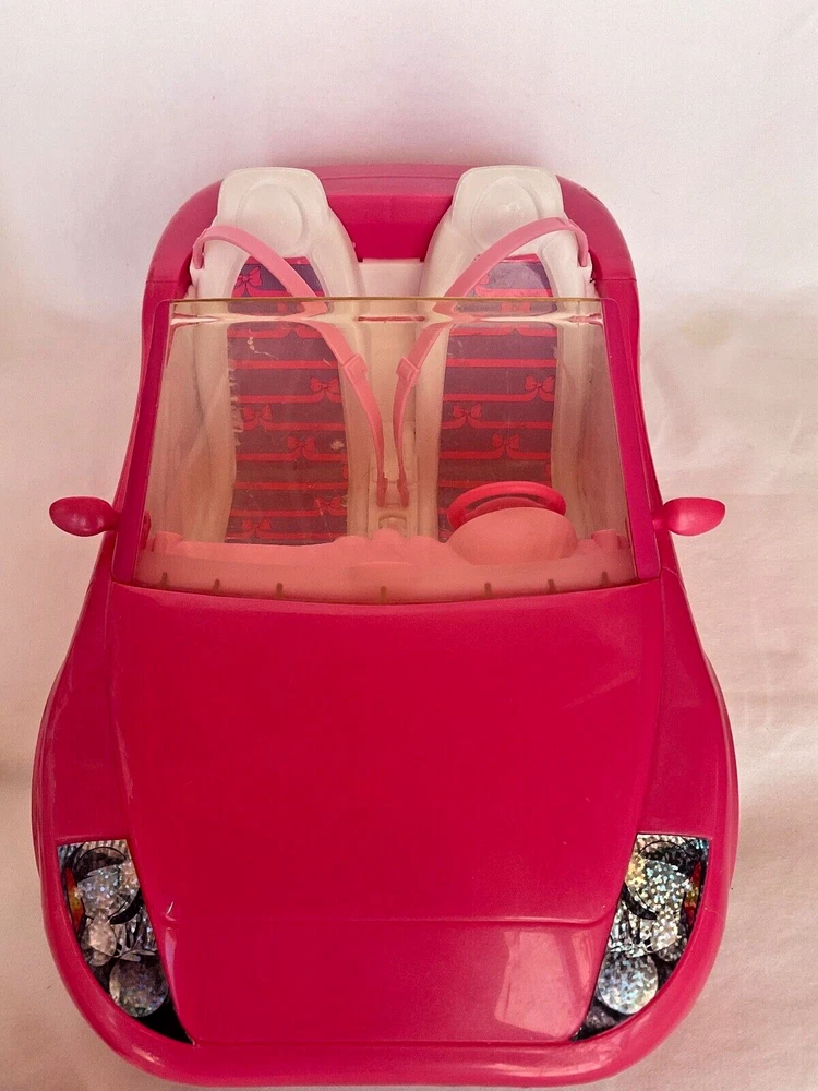 Get ready to hit the road with this amazing Barbie Glam Pink Convertible 2 Seater Sports Car! This bundle comes with Stacie and Barbie dolls as well as all the accessories they need for a fun day out. The car is made of durable plastic and has a pink color that will definitely turn heads. Whether you're a Barbie collector or just looking for a fun toy for your child, this bundle is perfect for you. The car is suitable for kids aged 3 and up, and the dolls have a wide age range of appeal. With its original design and high-quality materials, this bundle is a must-have for any Barbie fan. This custom bundle includes all items as shown in photos. Stacie doll comes with soccer ball, sparkly headband, tennis shoes, pants and top. Barbie doll comes with camera, sunglasses, Barbie necklace, sun visor, hair comb, tennis shoes, shorts and top. Car includes seat belts as shown. All items in this bundle are Barbie brand merchandise manufactured by Mattel.