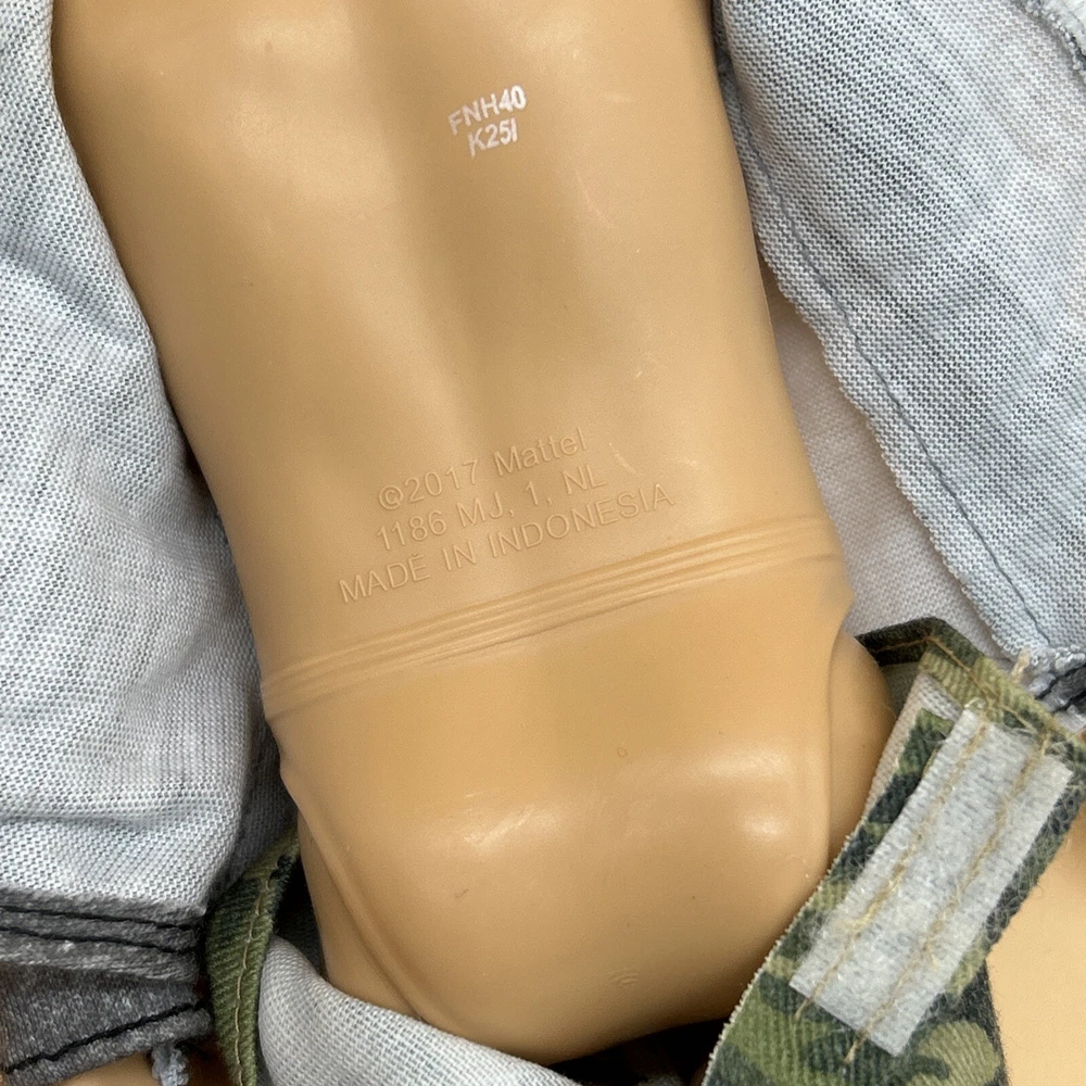 Barbie Ken Fashionistas #8 Camo Comeback Muscular Caucasian Doll FNH40 Please expect some light wear and tear. Please note that there is a small scuff in the right eyebrow as pictured. Doll pictured is the doll that you will receive. Anything not pictured is not included. Please refer to pictures for further condition details. Thank you for supporting our small business :)