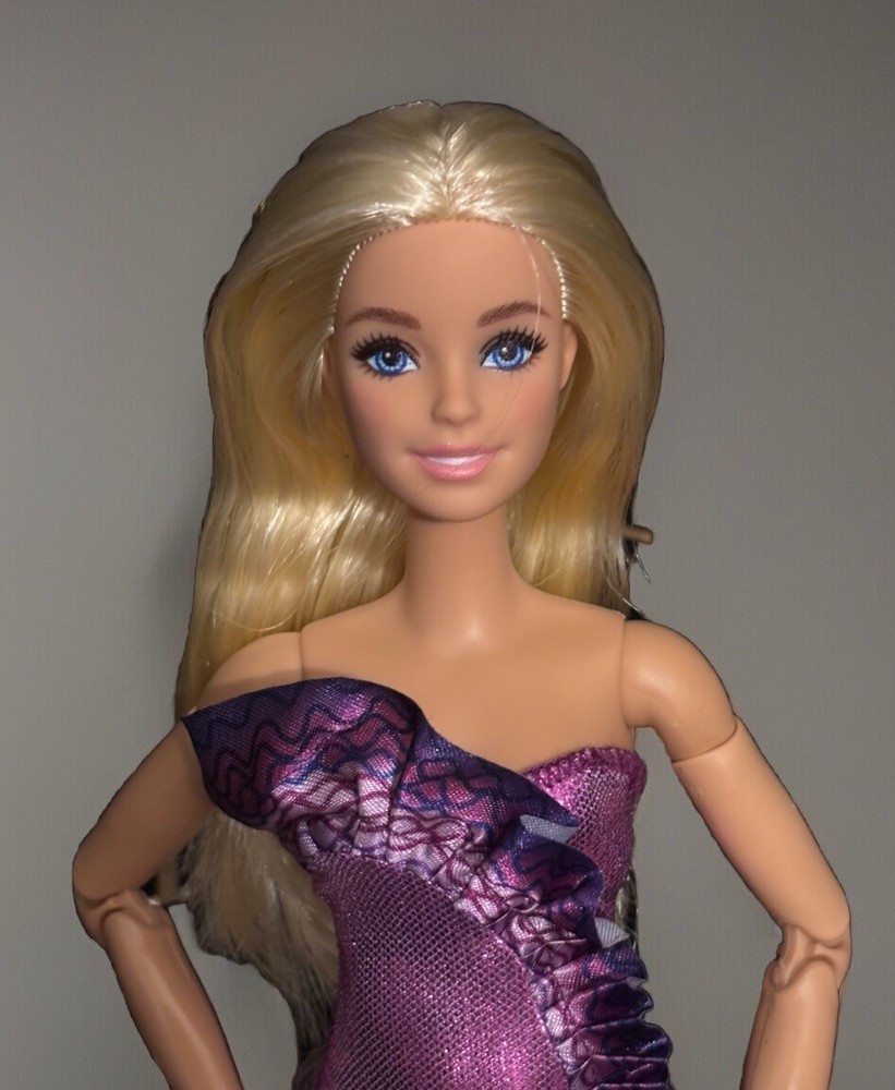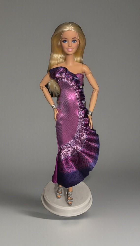 MTM Volleyball Player redressed and repackaged. This Barbie doll is a must-have for any collector or Barbie enthusiast. With blonde straight hair, blue eyes, and a light complexion, this 11-inch fashion doll is articulated and bendable, making her perfect for posing in any outfit. The doll comes with accessories and is repackaged in an original Barbie zipper packaging, making it a great addition to any collection. Made from vinyl and plastic, this Barbie doll is an original, licensed reproduction from the Made to Move product line. The doll is dressed in a stunning Fashionistas evening gown with silver shoes and bracelets. She has blonde hair, making her a beautiful addition to any display. Whether you are a fan of Barbie or simply love collecting dolls, this piece is sure to impress.