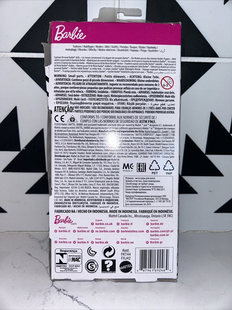Doll Age Group: Adult, Teens, Youth Age Level: 3+ Color: Multicolor Theme: Outdoor Adventure Number of Pieces: 4 Year Manufactured: 2018 Set Includes: Outfit, Shoes, Top, Pants, Boots Doll Type: Fashion Doll Doll Gender: Girl Doll Material: Cloth, Plastic Clothing Style: Casual Occasion: All Occasions Product Line: Barbie Fashion Packs Original/Licensed Reproduction: Original Brand: Barbie Time Period Manufactured: 2010-2019 Clothing Type: Boots, Dress, Shoes, Top Franchise: Barbie Fashion Pack Country/Region of Manufacture: Indonesia Personalized: No Unit of Sale: Single Unit Type: Clothing Handmade: No Vintage: No Antique: No Character: Barbie