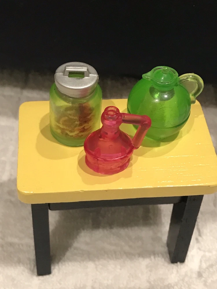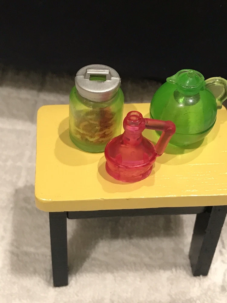 Add some color to your Barbie's kitchen with this beautiful pasta jar! The clear plastic container is perfect for storing play food and creating a realistic diorama in your dollhouse. The colorful jar pieces from Mattel will make a great addition to any Barbie collection. Bring some life to your Barbie's kitchen with this unique and fun pasta jar! Barbie Vintage Dream House Kitchen Used Condition with play wear. Items sold as found I have no idea of their prior life. This is a vintage accessory which means it is not new, item is in used poor condition. PLEASE REVIEW ALL THE PHOTOS THAT SHOW CONDITION. THANK YOU. NOT FOR THE FUSSY BUYER. In played with condition and may need a wash, have stains, dirt marks, odors, play wear, scratches, scrapes, holes, fading, cracks or imperfections, etc. Does not include doll or accessories LOOK AT PHOTOS FOR Condition Let me know if you have any questions. Thanks for looking. ALL SALES FINAL - NO RETURNS