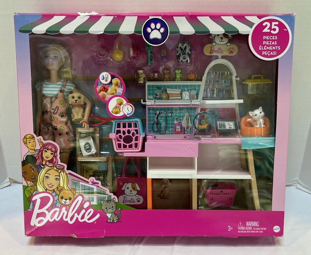 Barbie Pet Boutique with 4 Pets Color-Change Grooming Feature Playset. See photos for box condition.