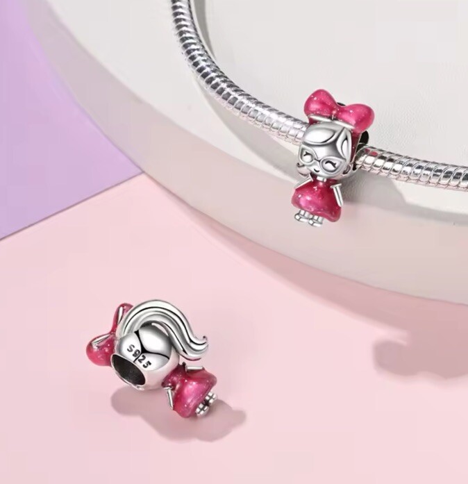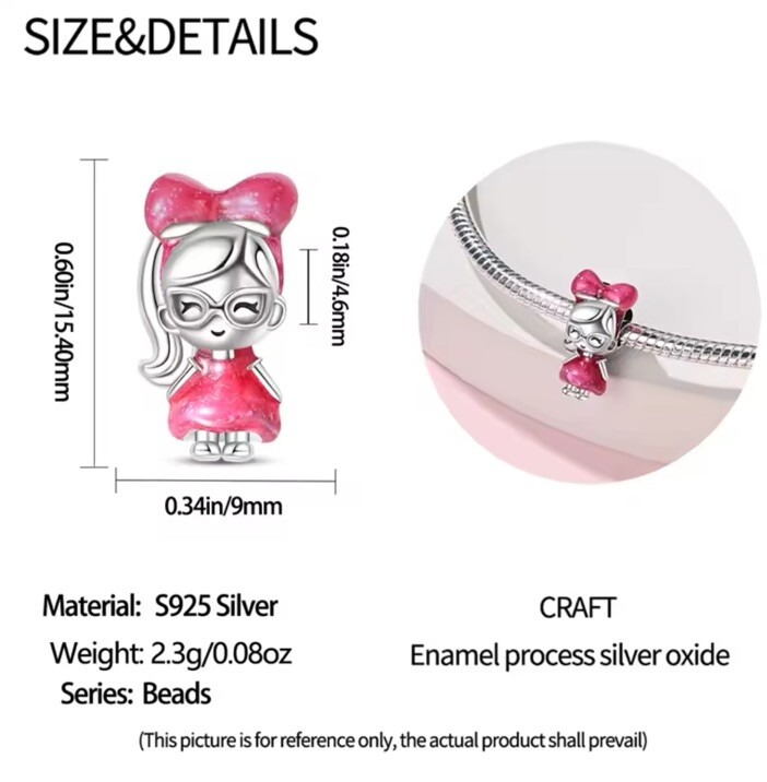 Barbie Pink Charm Bracelet with 925 Sterling Silver Beads Gradient Color Gift