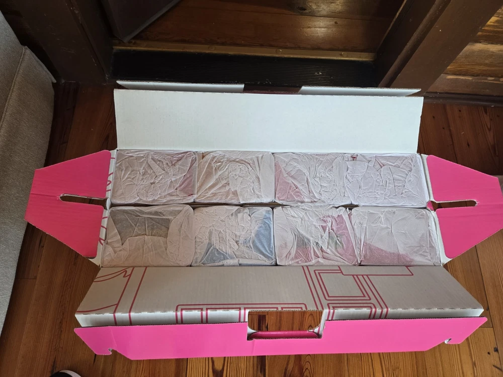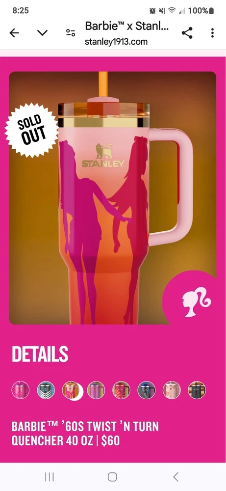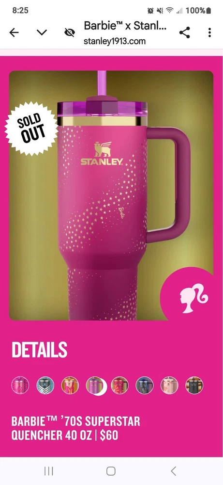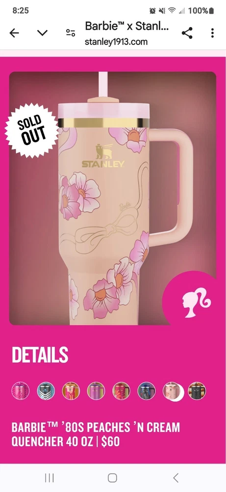 This product is a set of 8 Barbie Stanley Quencher Tumblers, featuring the collaboration between Barbie and Stanley. The tumblers are multicolored with a Barbie character design, perfect for fans of cartoons, TV, and movie characters. Each tumbler is brand new and never opened, making it a collectible item for Barbie enthusiasts and fans of unique kitchenware. Enjoy a fun and colorful way of serving your favorite drinks with this exclusive collection.