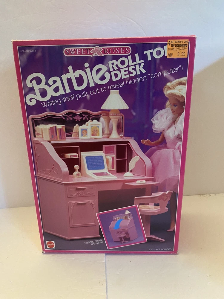 Mattel Barbie Sweet Roses Roll-Top Desk. Complete set with all accessories in original box with instruction booklet. Hidden computer and desk cover still functions well. Please let me know if you have any questions!