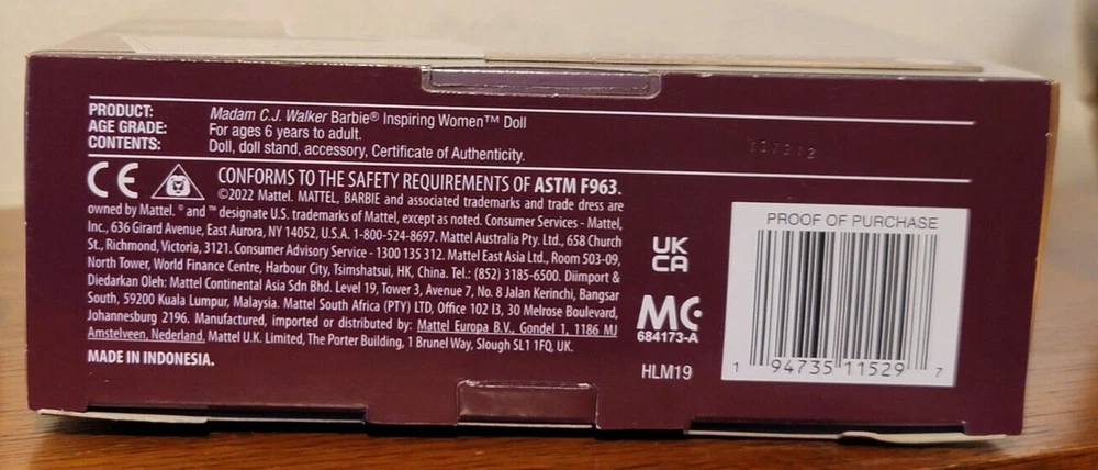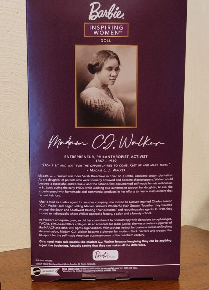 Condition Rating N New or new with tag. S Like new, barely used. A Good condition with minor signs of use. B Used condition with some damages/flaws. C Overall, there is sign of heavy usage with major damage/flaws. Item description: This is a brand-new Madam C.J. Walker Doll, new in box, never removed from the outside box. Please scan, enlarge and review all photos closely for they are a large part of the description. Photos are of the actual item offered for sale. Ask questions prior to purchase. Shipping and handling: your order will ship within 1 business day whenever possible. Please verify your address during checkout. I am not responsible for any wrong or undeliverable addresses. Combined Shipping is offered. I offer free returns within 30 days , if item doesn't match the description. Returns must be initiated within 7 days after delivery. Item must come back in the same condition and like packaging as it was sent to you for a refund.