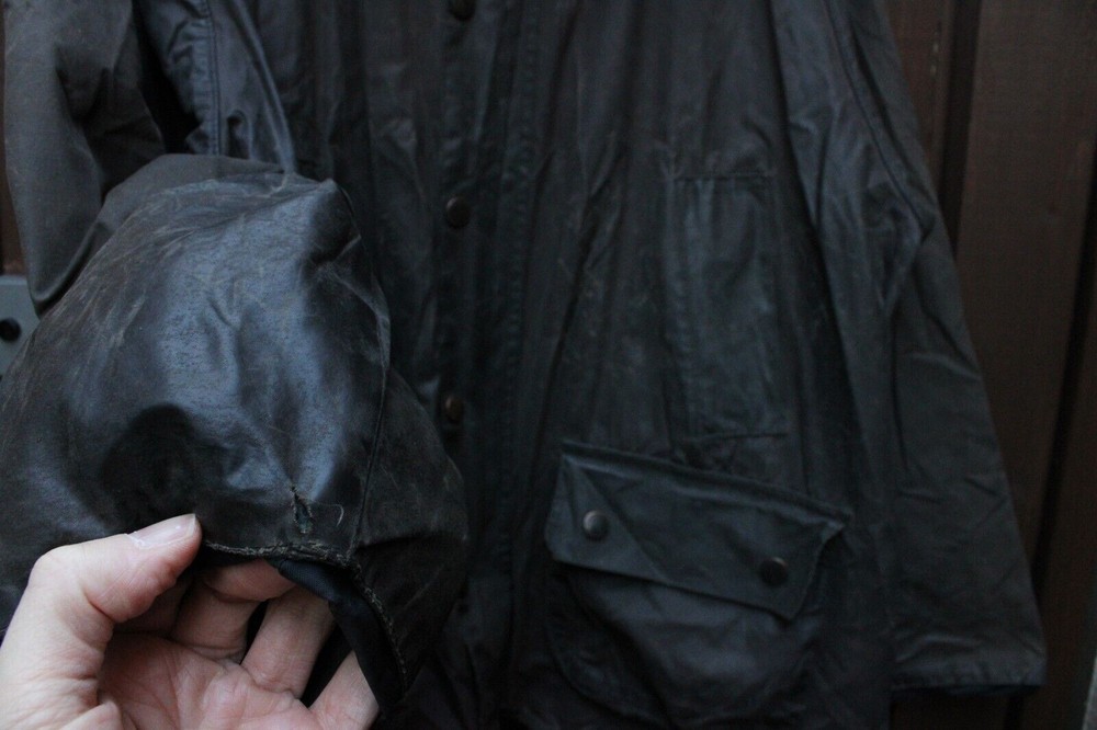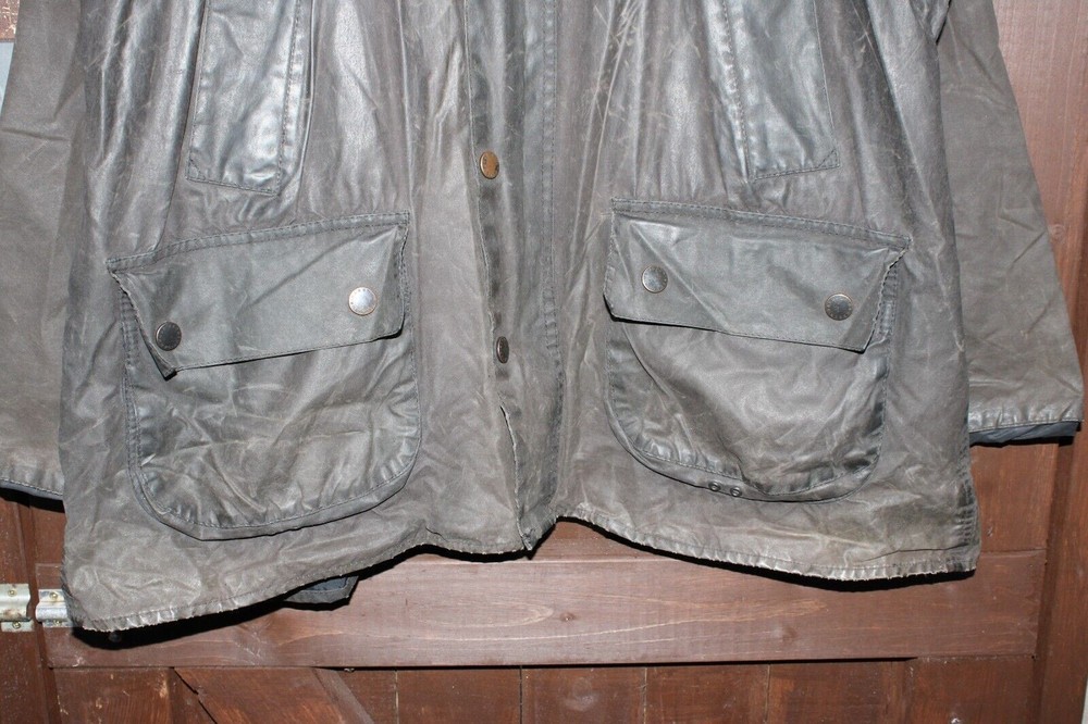 $ 18.811986 Vintage Barbour Border Waxed Jacket Hooded Olive Brown Mens Medium A200 C36