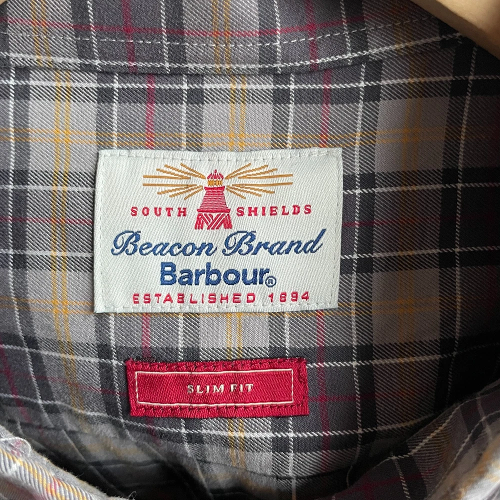 Barbour Checkered Slim Fit Shirt Excellent pre-owned condition Size XXL Measures: Shoulders 53 cm/ 20.8 in Pit to pit 62 cm/ 24.4 in Sleeve from shoulder 68 cm/ 26.7 in Length in back 82 cm/ 32.2 in + collar All items are measured laying flat