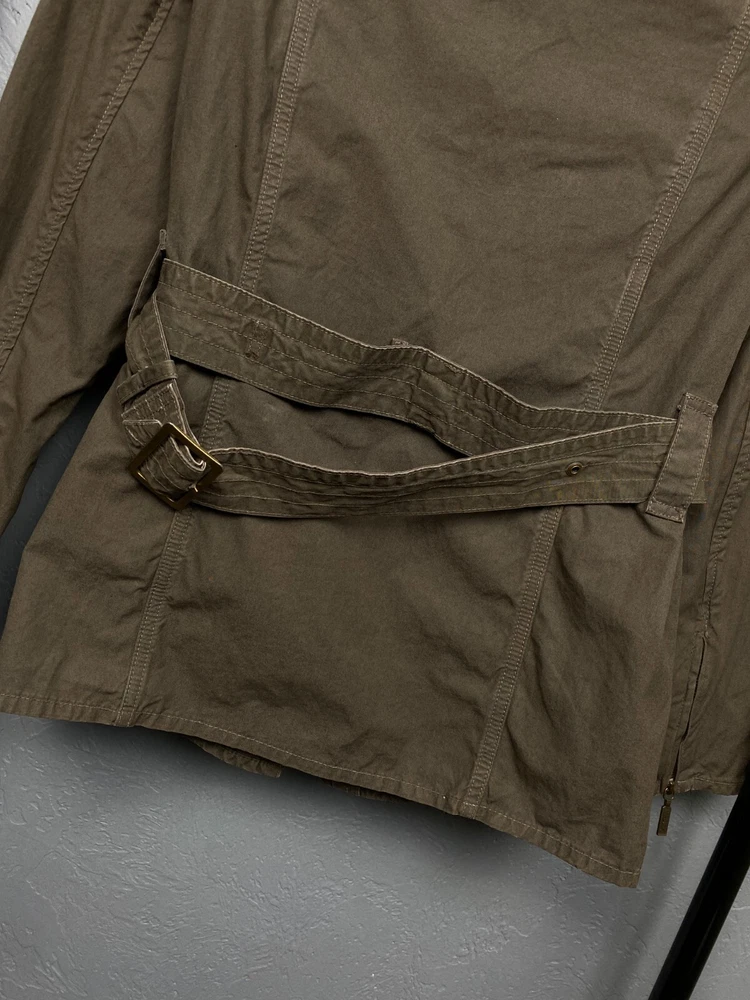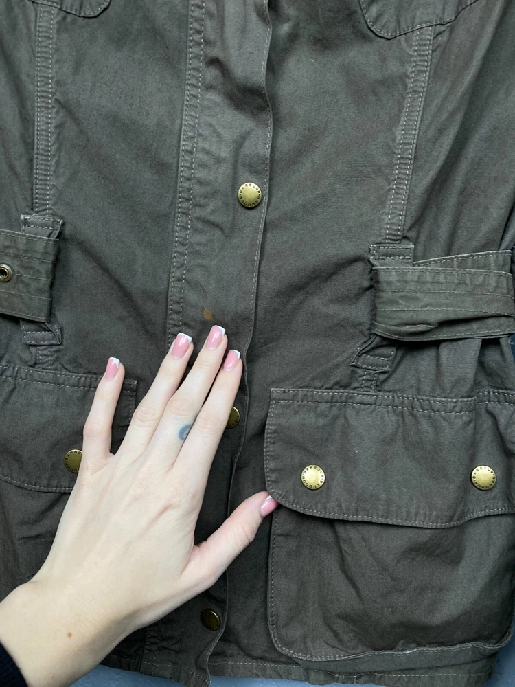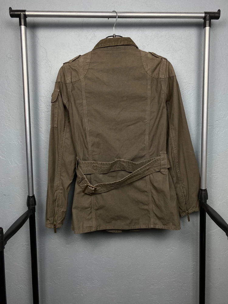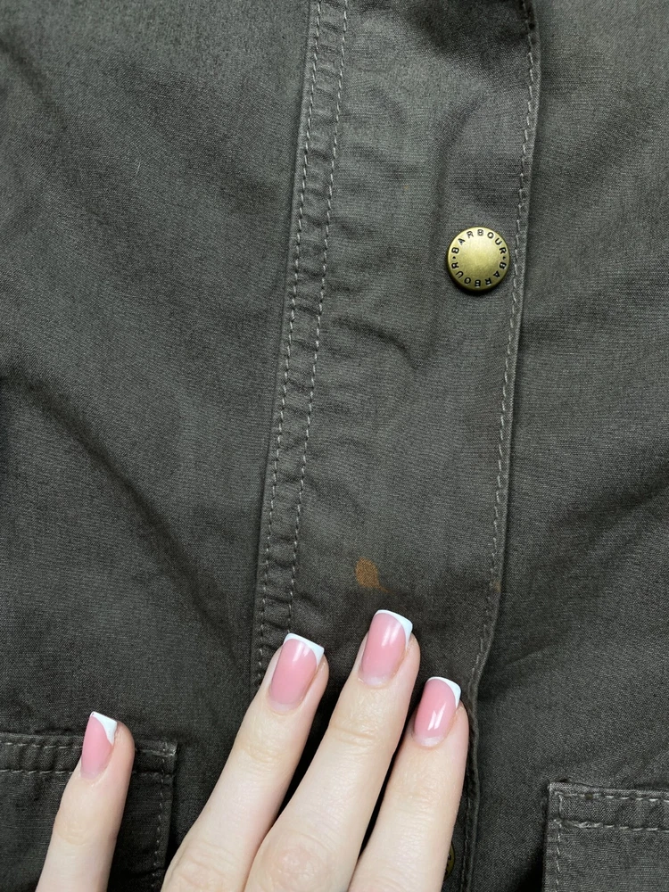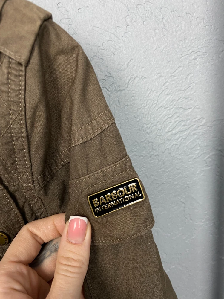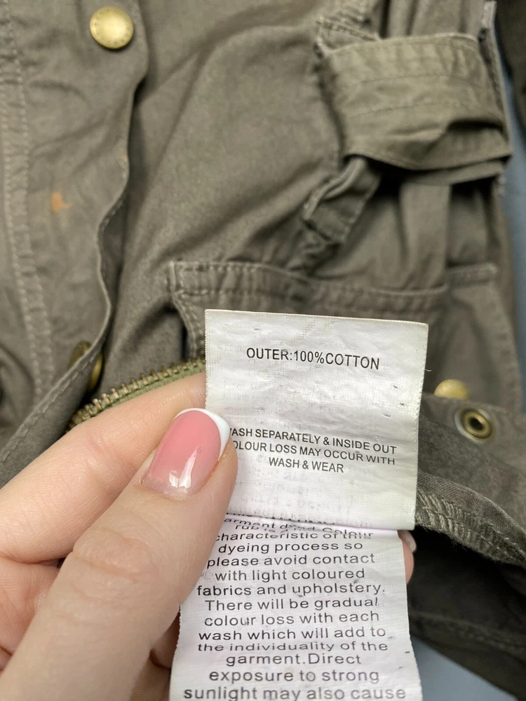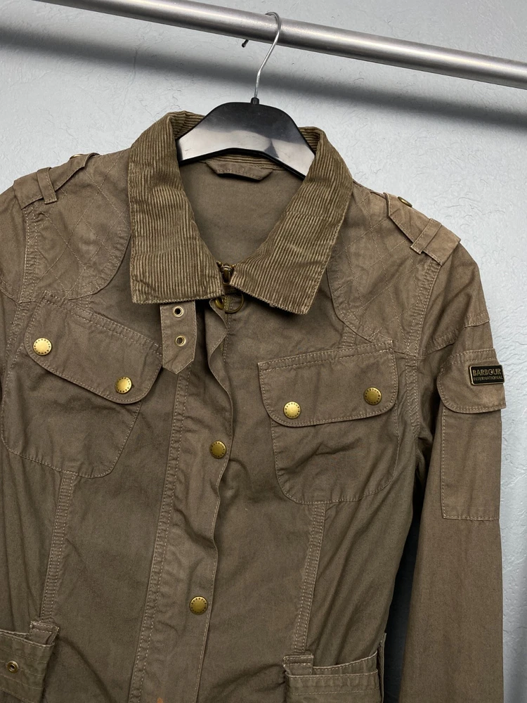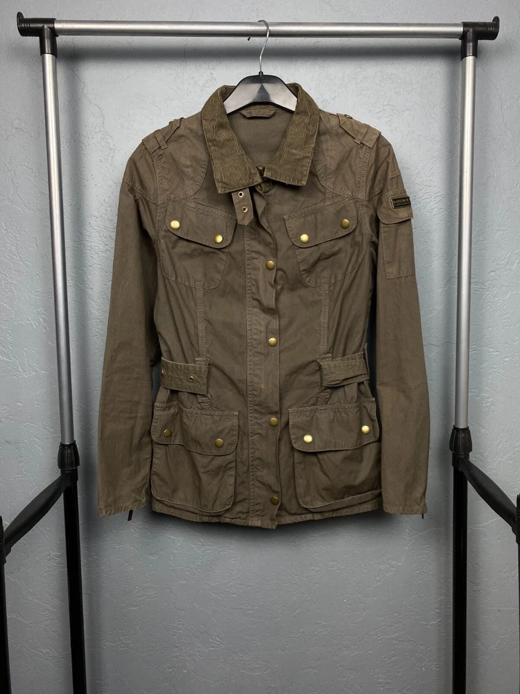 Lining Material: Cotton Brand: Barbour Pattern: Solid Style: Biker Size: M Color: Multicolor Personalize: No Closure: Zip Seller Notes: “Has small spot in the front, but that is hidden by the belt.” Outer Shell Material: Cotton Type: Jacket Vintage: Yes Theme: Biker Handmade: No Department: Women Fit: Regular Sleeve Length: Long Sleeve Size Type: Regular Country/Region of Manufacture: United Kingdom