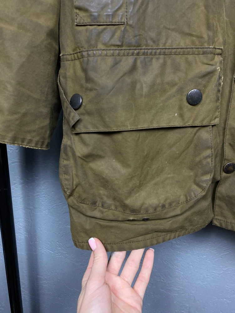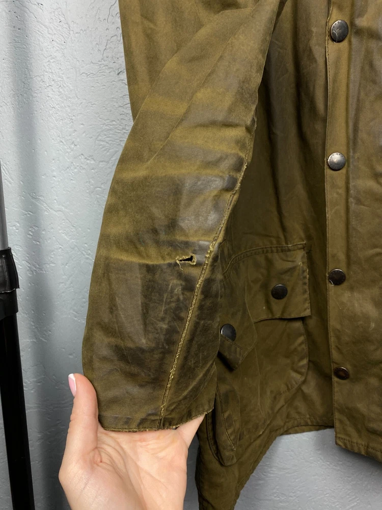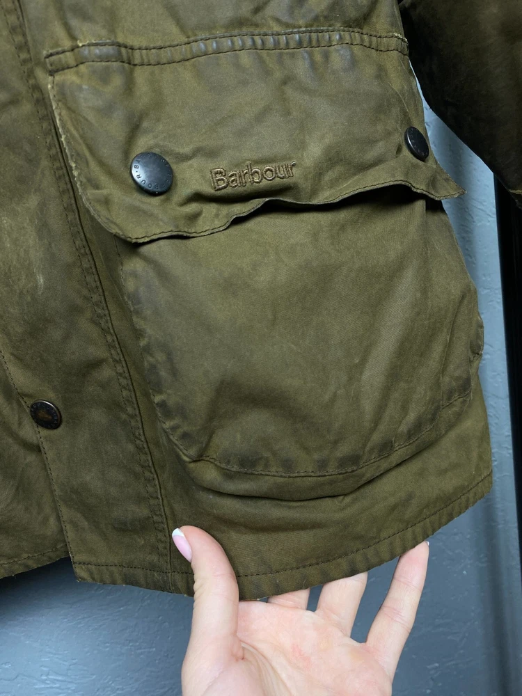 Handmade: No Vintage: No Brand: Barbour Size Type: Regular Color: Multicolor Size: L Type: Jacket Theme: Classic Outer Shell Material: Cotton Department: Men Seller Notes: “BAD CONDITION.” Lining Material: Cotton Personalize: No Style: Rain Coat Model: Barbour Beaufort Fit: Classic Closure: Snap, Zip Features: Waxed Pattern: Solid