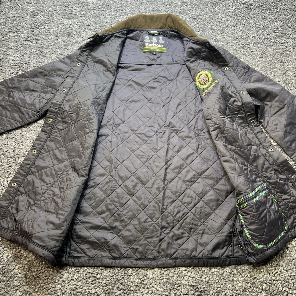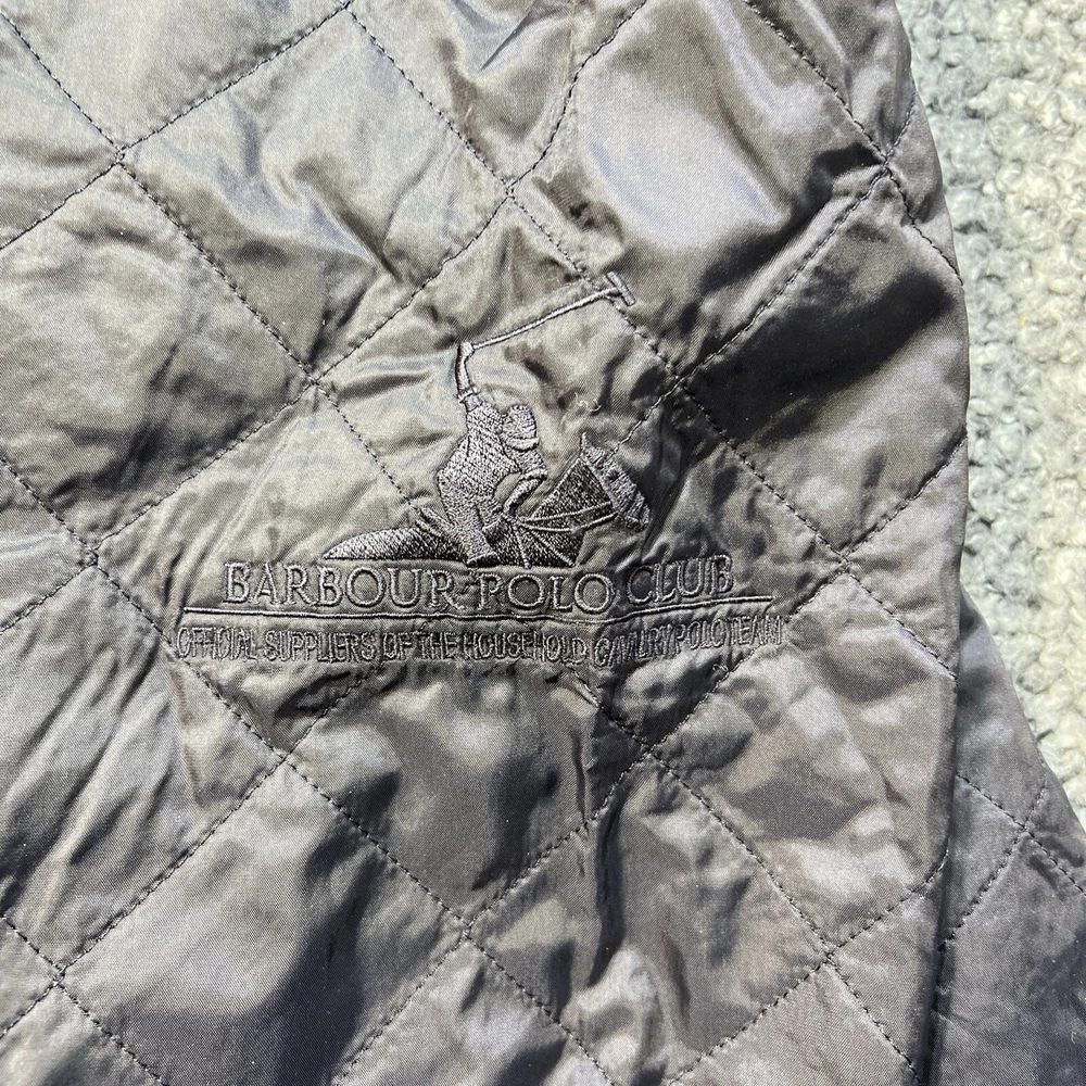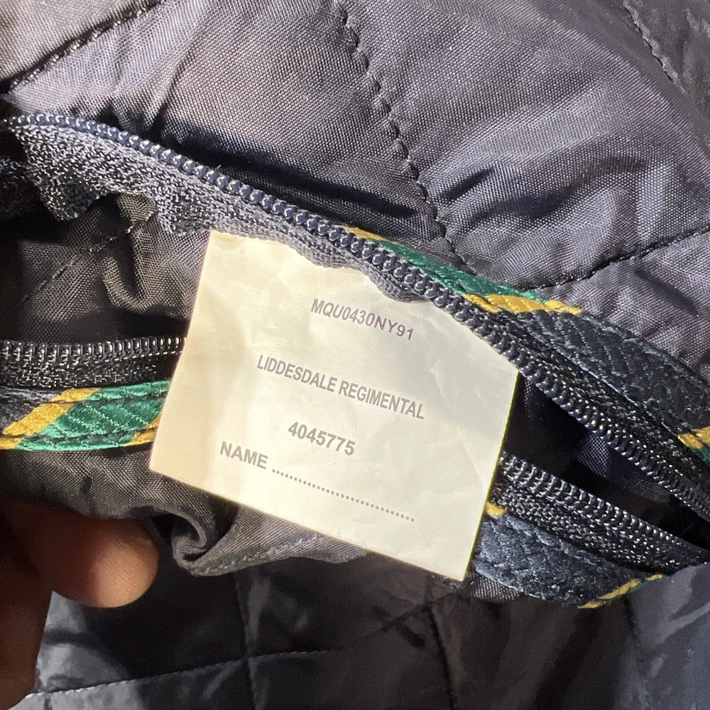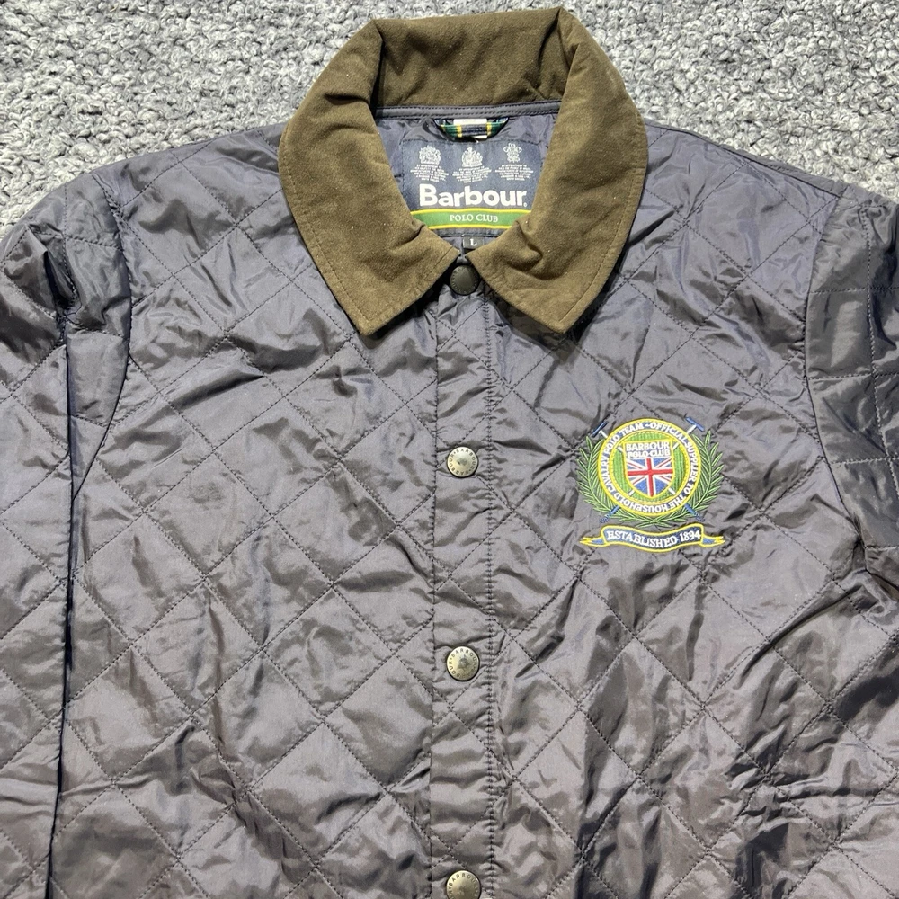 Barbour Men's Polo Liddesdale Regimental Navy Quilted Jacket Coat Size L special edition polo club by Barbour in dark navy Blue features embroidered patch and green/blue silk lining under the collar - great condition