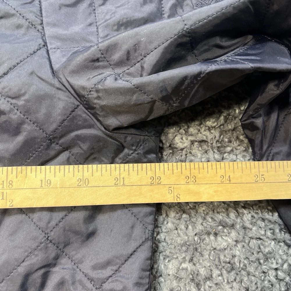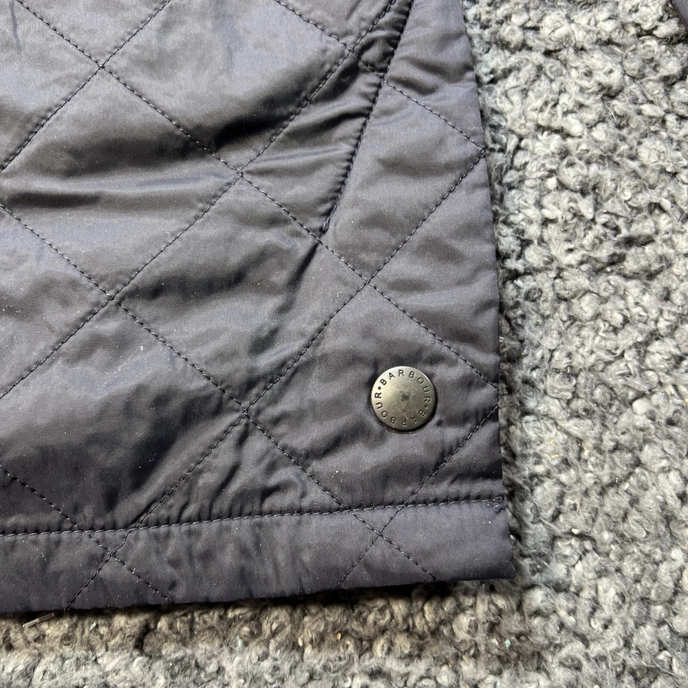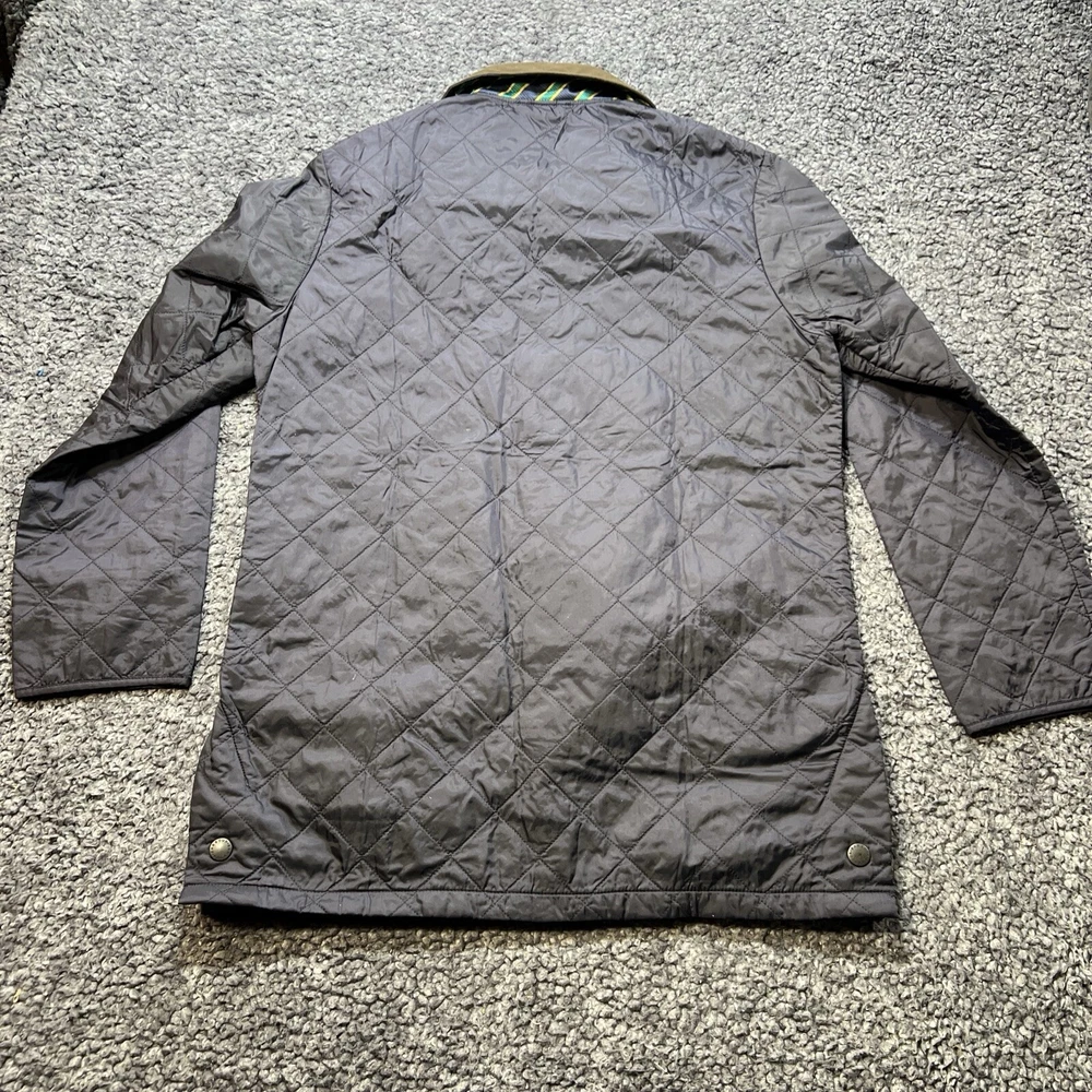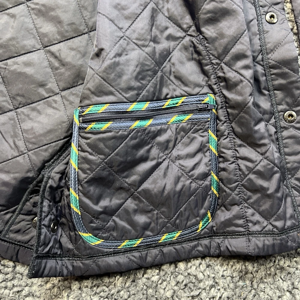 Barbour Men's Polo Liddesdale Regimental Navy Quilted Jacket Coat Size L special edition polo club by Barbour in dark navy Blue features embroidered patch and green/blue silk lining under the collar - great condition