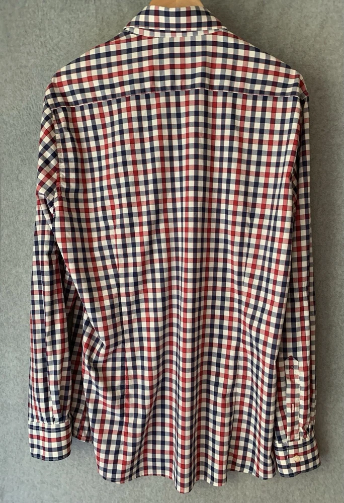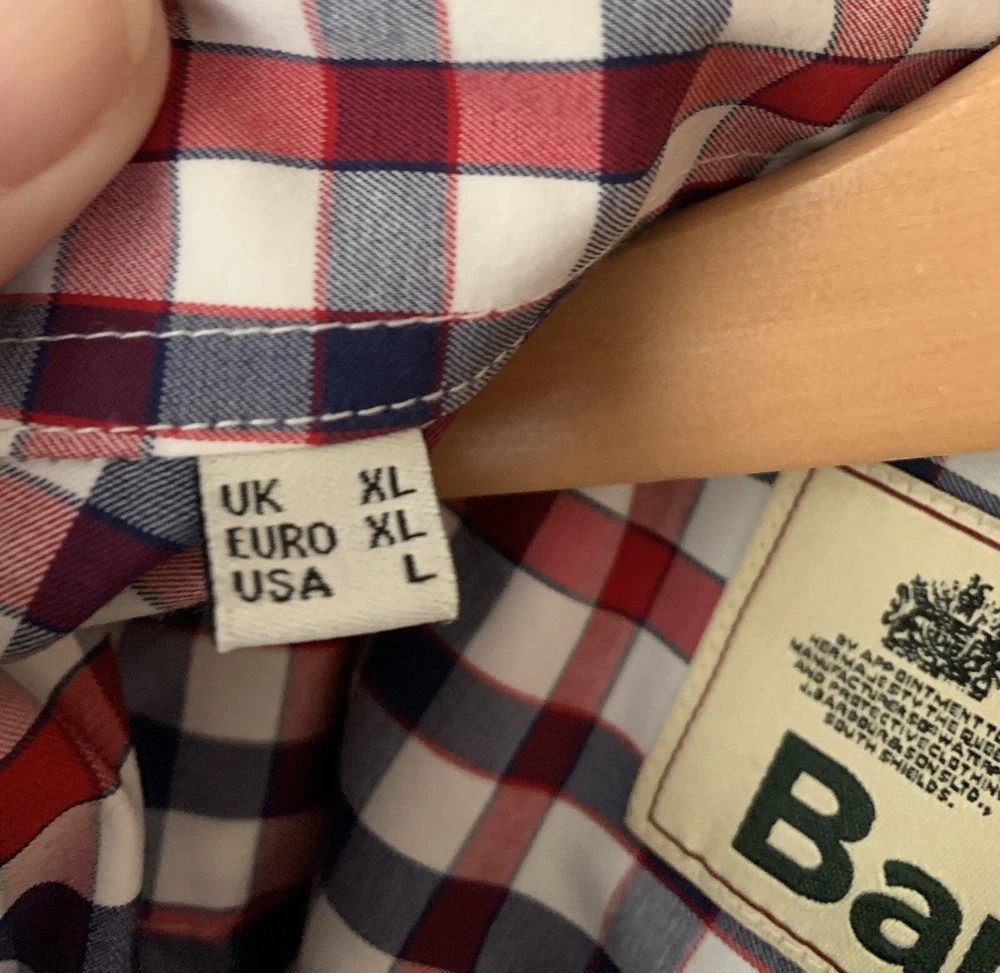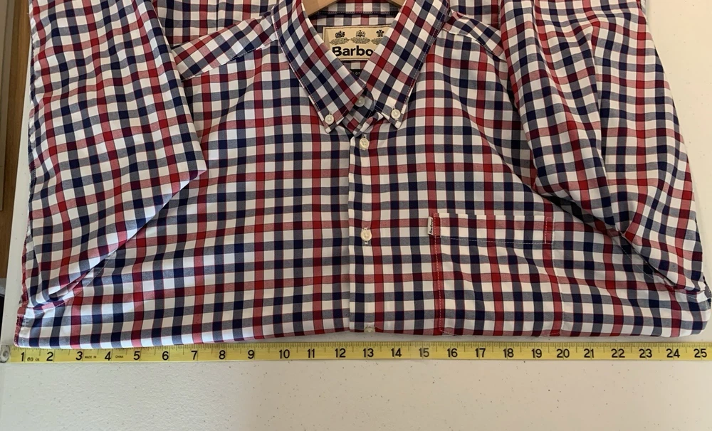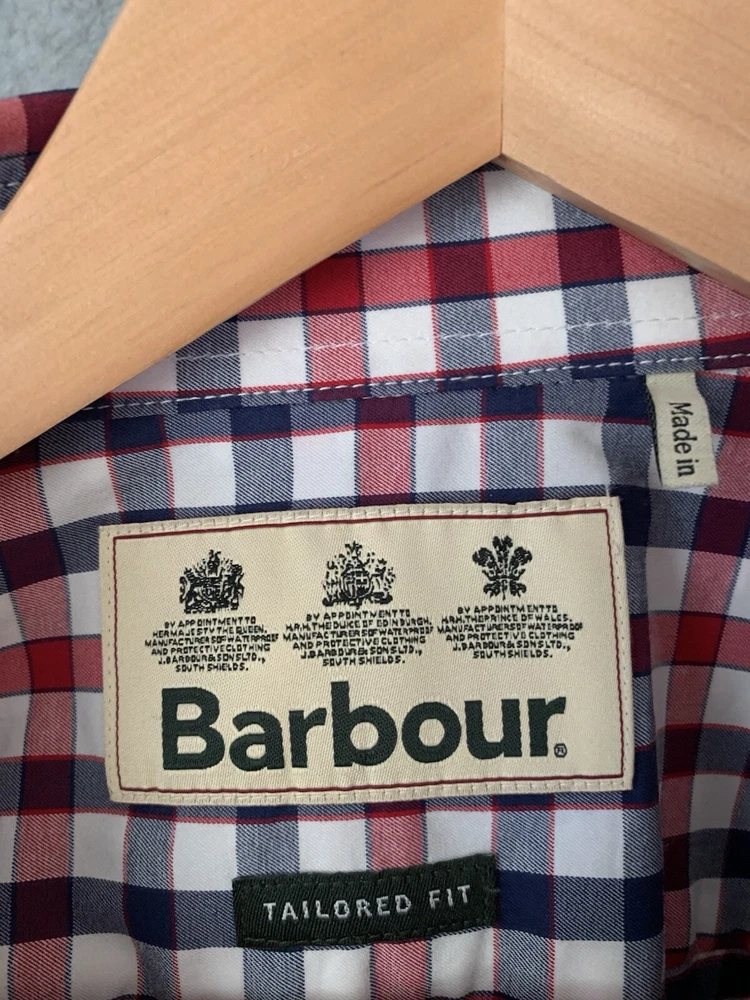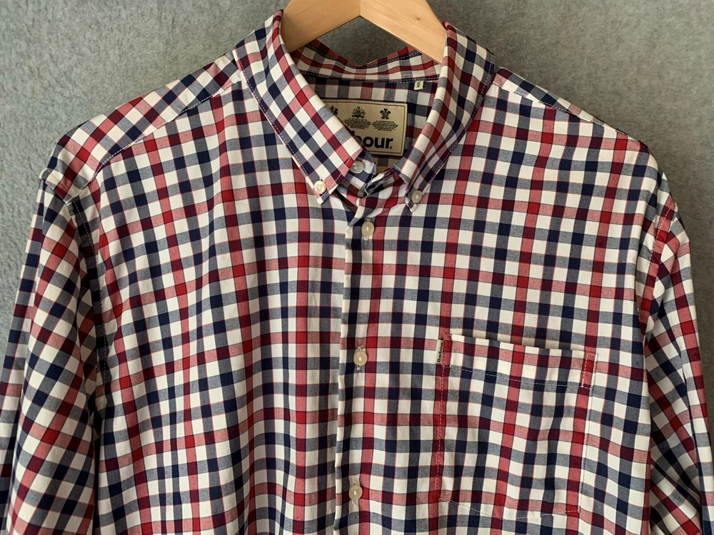 Barbour Mens Tailored Fit Shirt Button Down Plaid Sz L Blue Red Performance See pics for measurements.