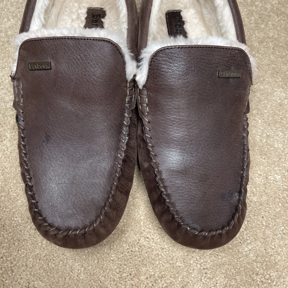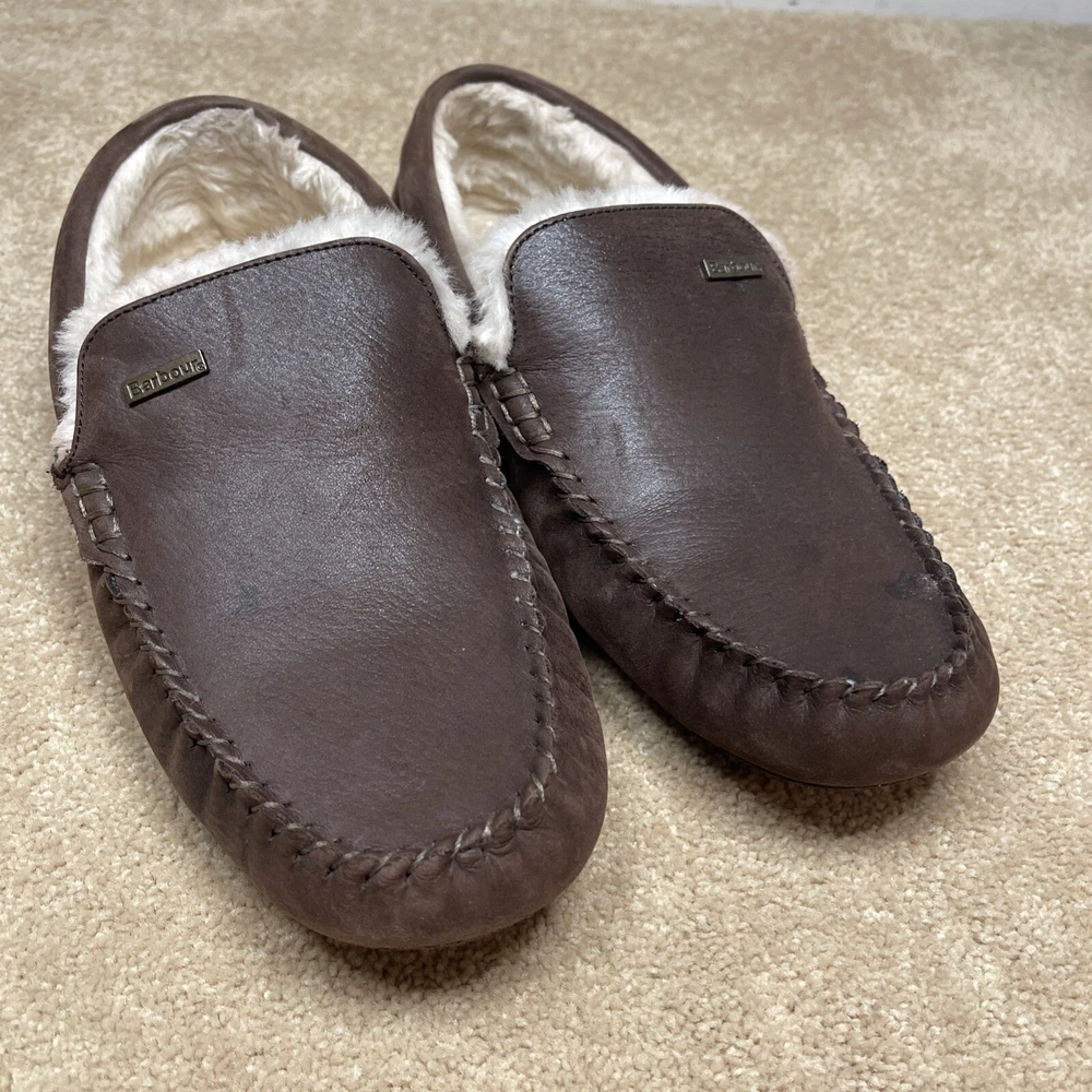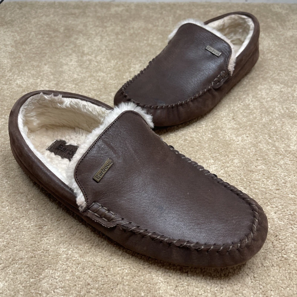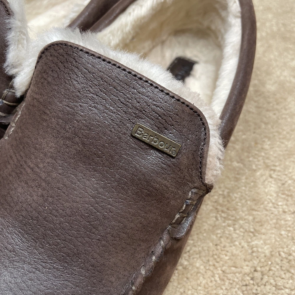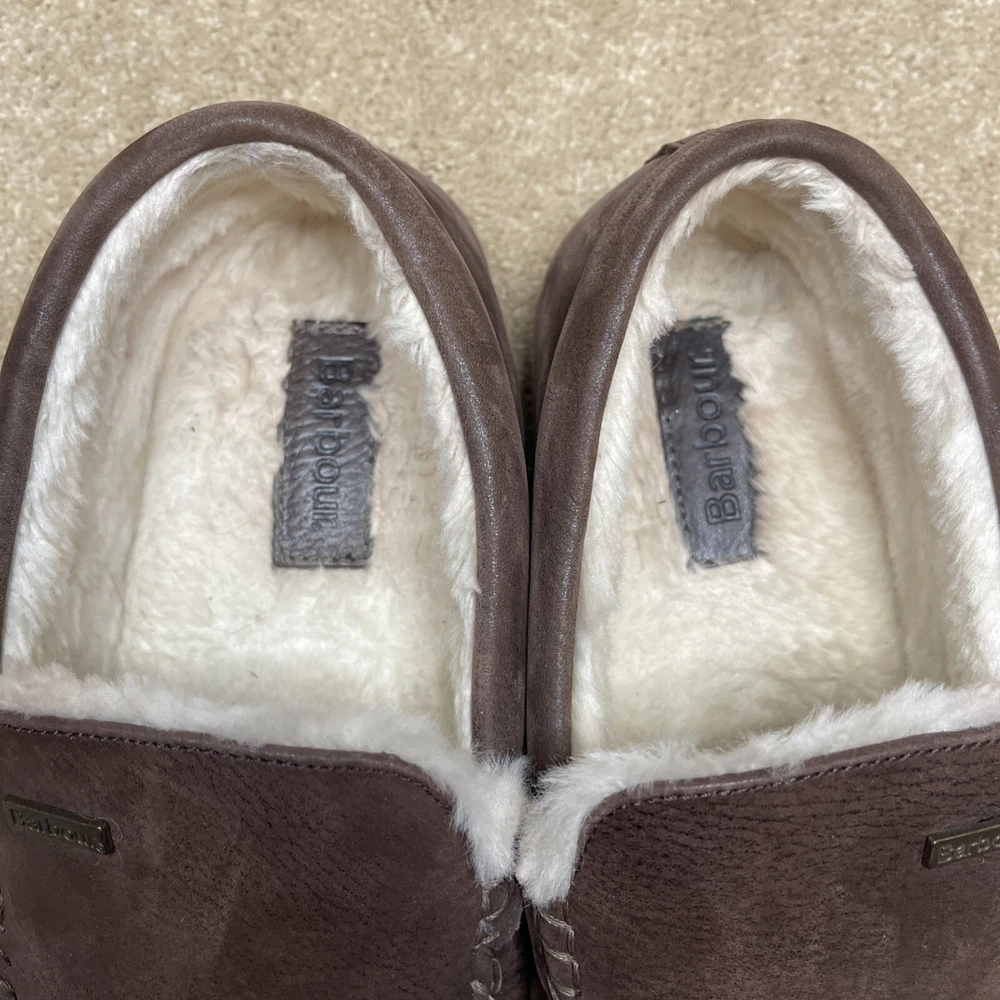 Barbour Monty Mens 7 Moc Toe Brown Leather MSL0001BR71 Lined Driving Slippers