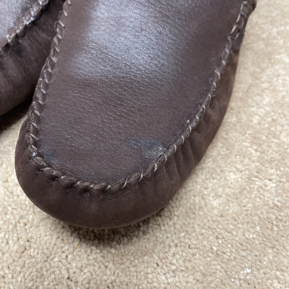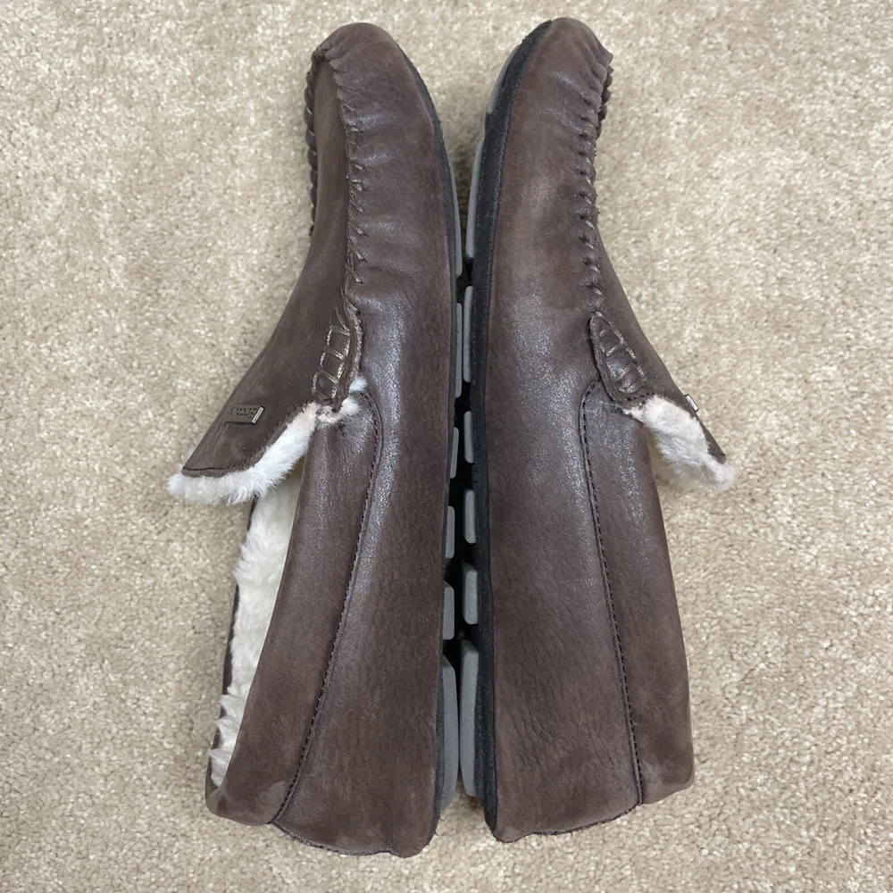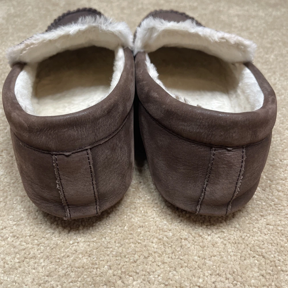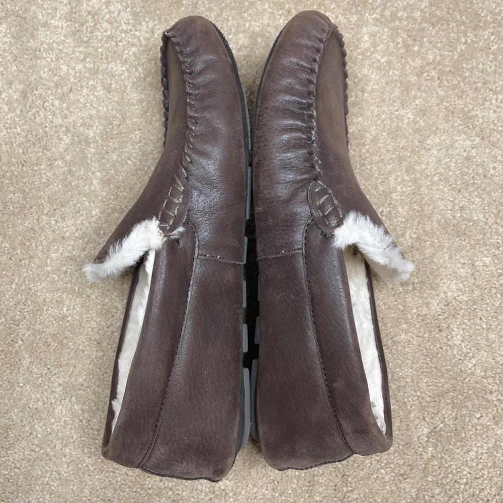 UGG Mens Slippers Driving Shoes Brown Leather Sheepskin Sz 9 Pre-owned
