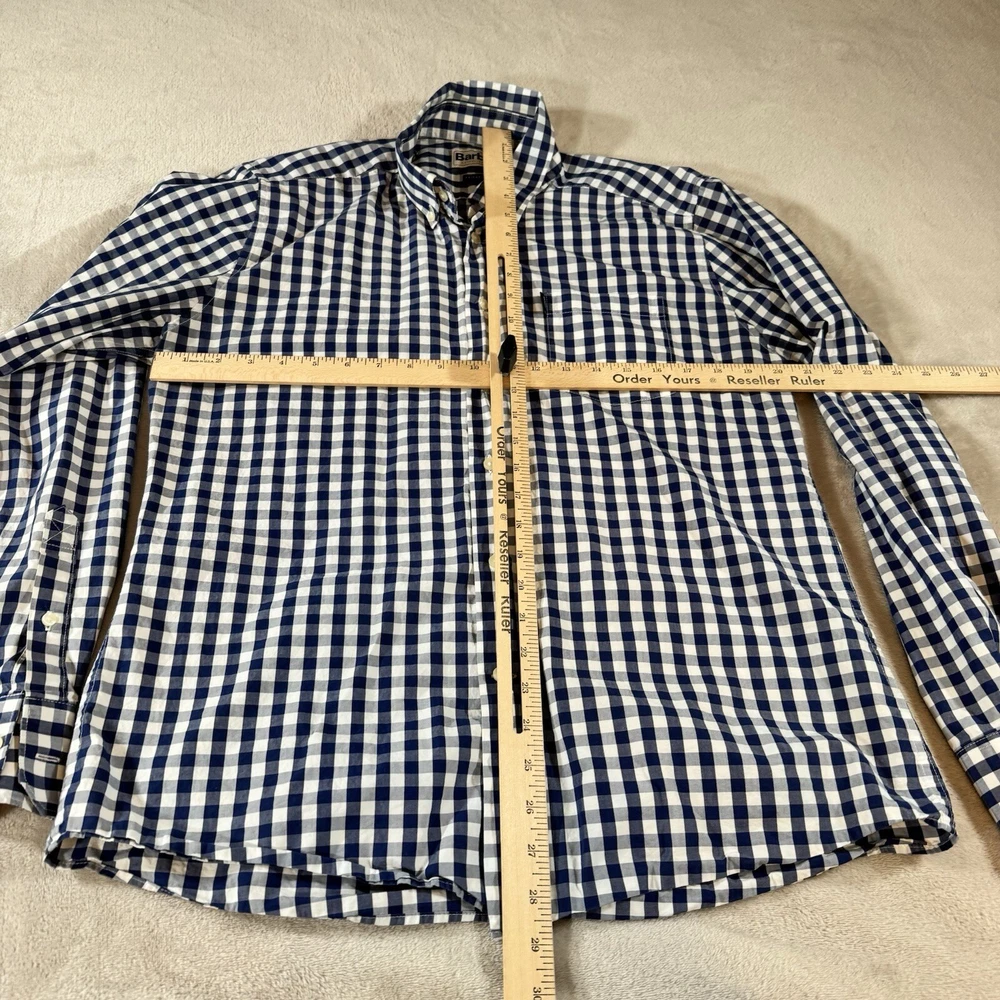 Crafted for the modern gentleman, this Barbour men's dress shirt is a testament to timeless style and comfort. The classic blue and white check pattern exudes a versatile charm that's easy to pair with a range of bottoms, from smart trousers to casual denim. The shirt comes in a regular size large, ensuring a comfortable fit that doesn't compromise on form. The button-down collar adds a touch of refinement, making it an ideal choice for both professional settings and social gatherings. The shirt's construction promises durability while maintaining a lightweight feel, perfect for layering or standalone wear. Embrace the effortless elegance that comes with this staple piece from Barbour's distinguished collection.