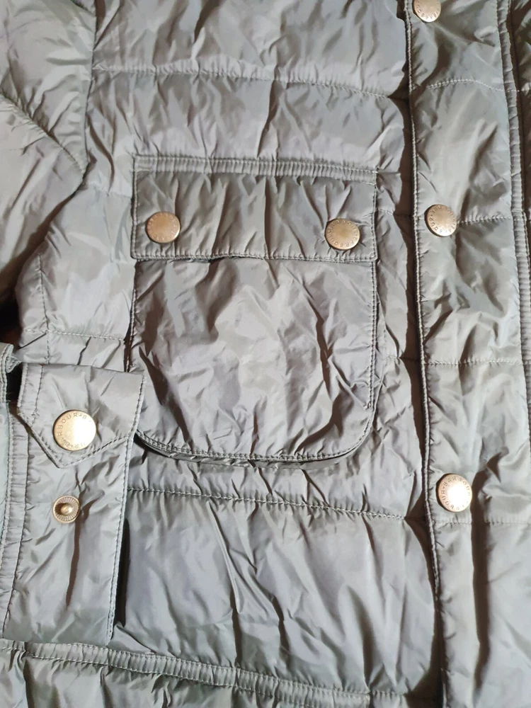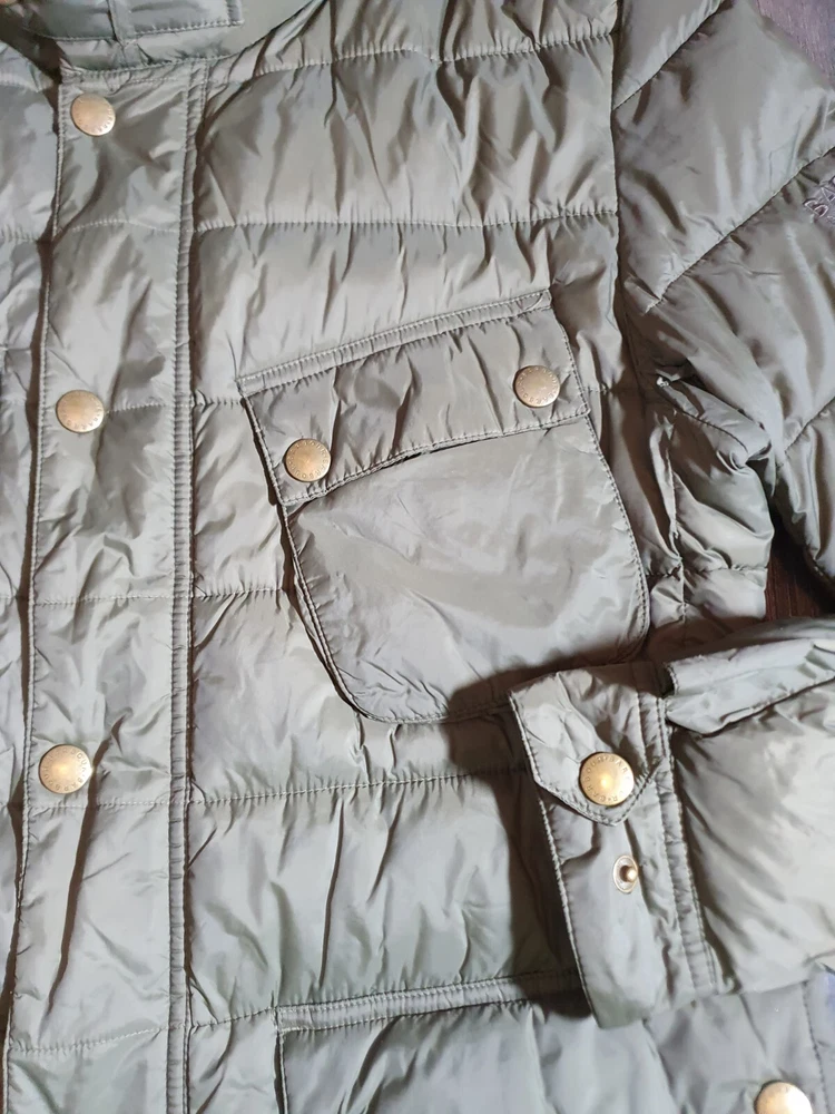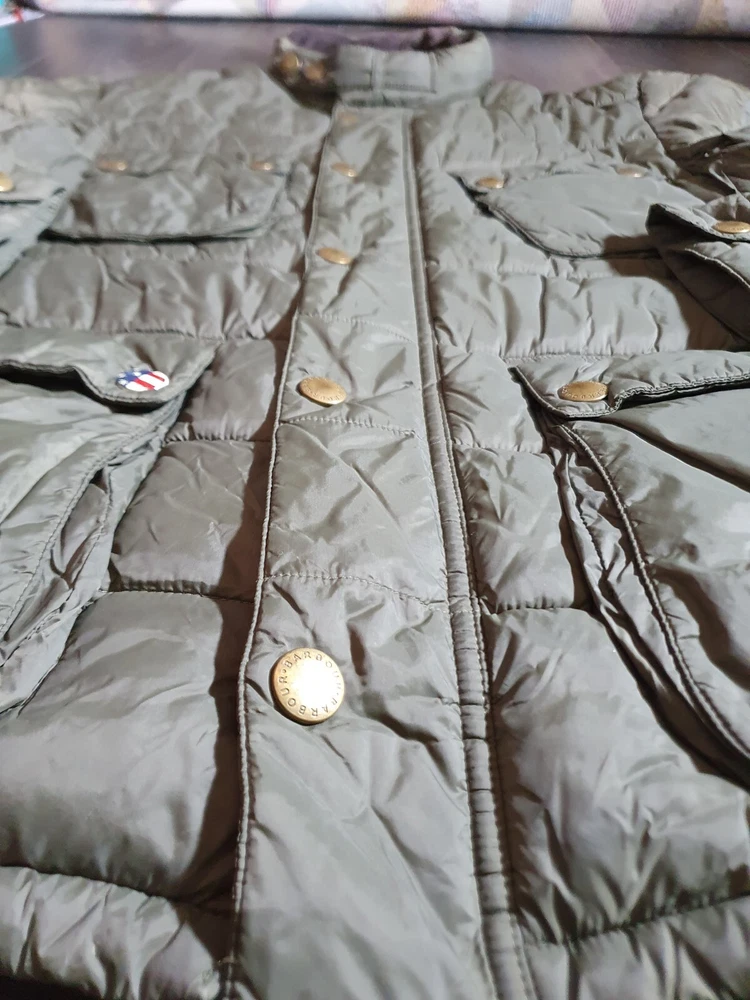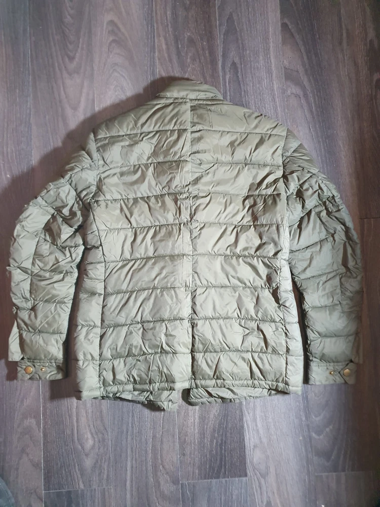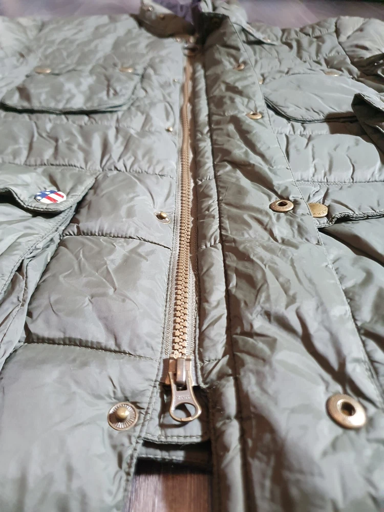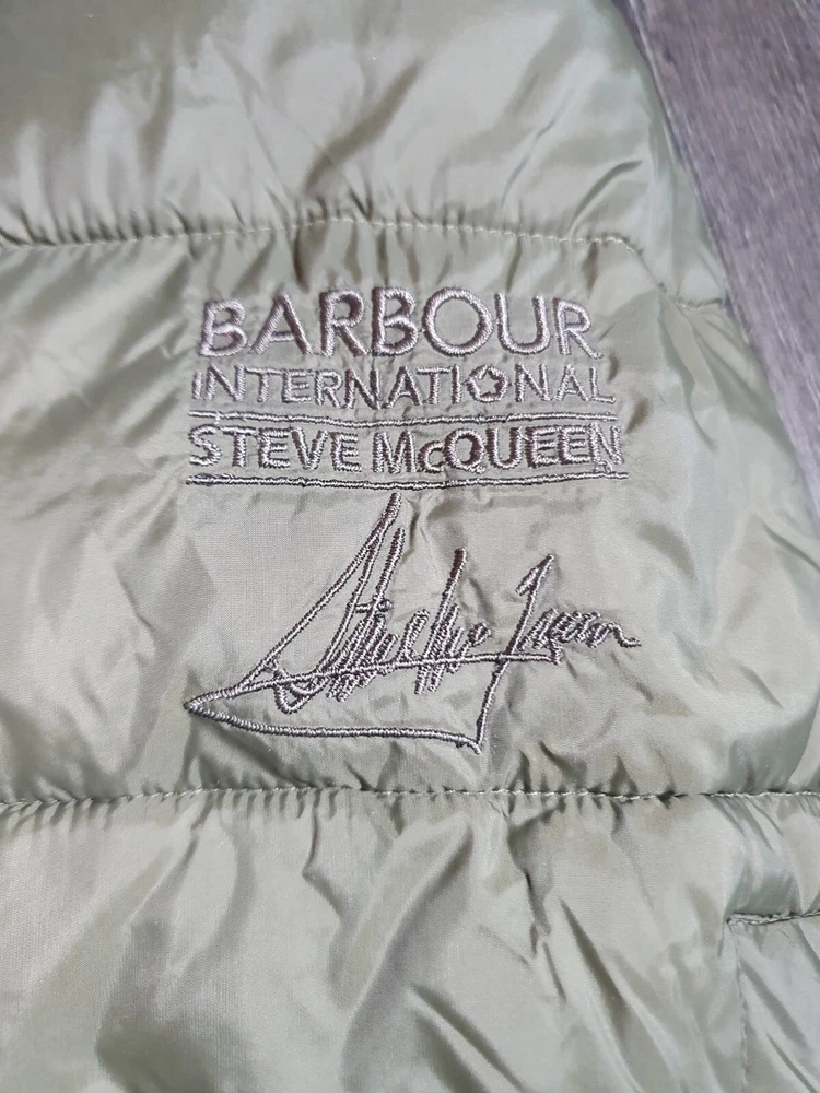 Crafted for the style-conscious, the Barbour Steve McQueen JEFFRIES Baffle Jacket blends timeless design with contemporary functionality. This olive green puffer jacket, in a regular fit size M, is a testament to enduring fashion trends and offers practicality for all seasons. It boasts a durable polyester outer shell, lining, and insulation, ensuring warmth and comfort without sacrificing breathability. The jacket's features include a full zip closure with additional button fastenings, a smart collared neckline, and handy pockets for essentials. With its limited edition status, the JEFFRIES Baffle Jacket is a distinctive piece that elevates any ensemble, making it a must-have for any wardrobe.