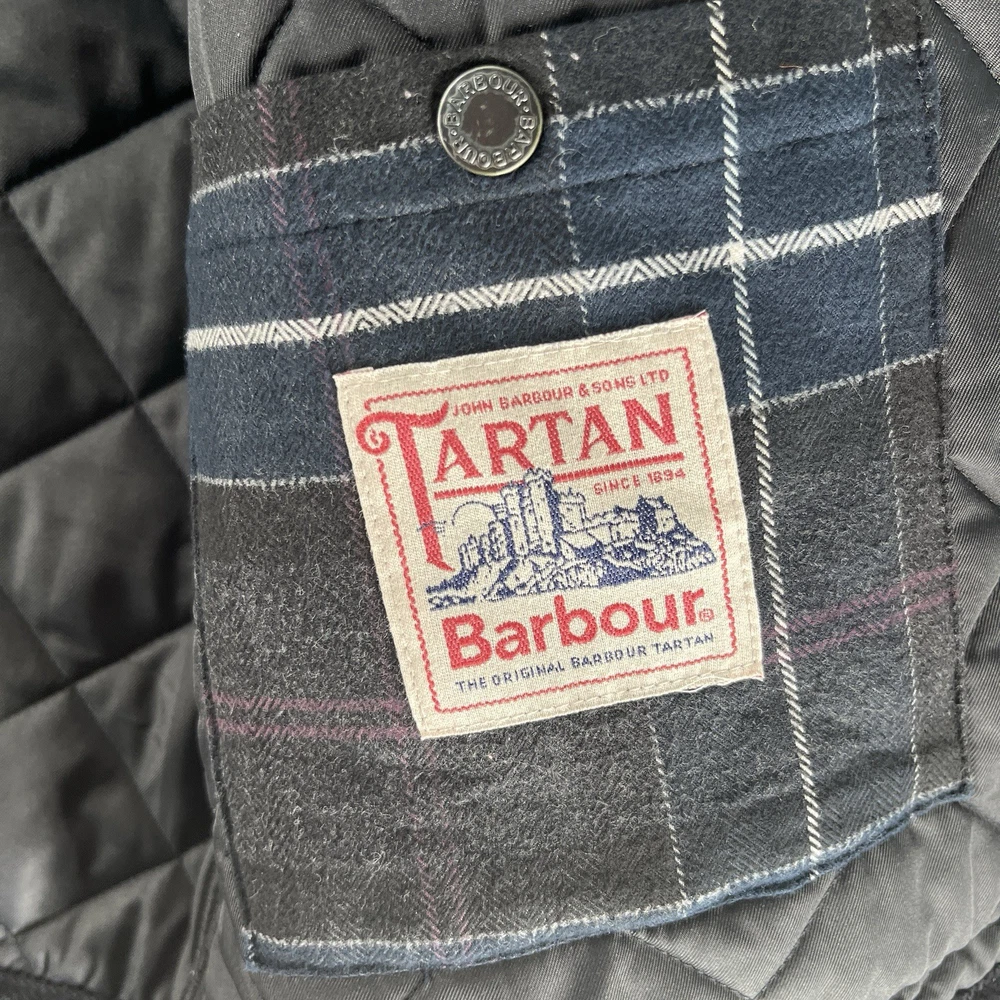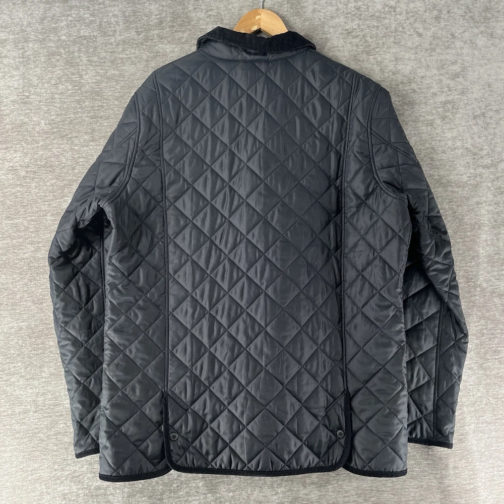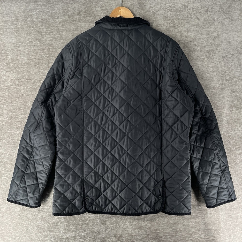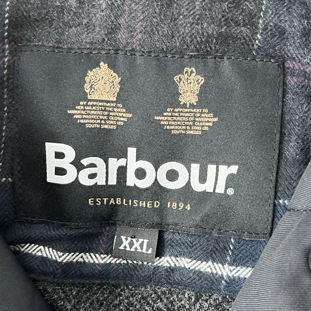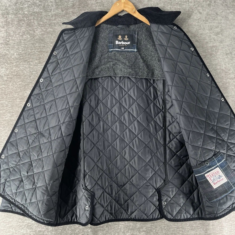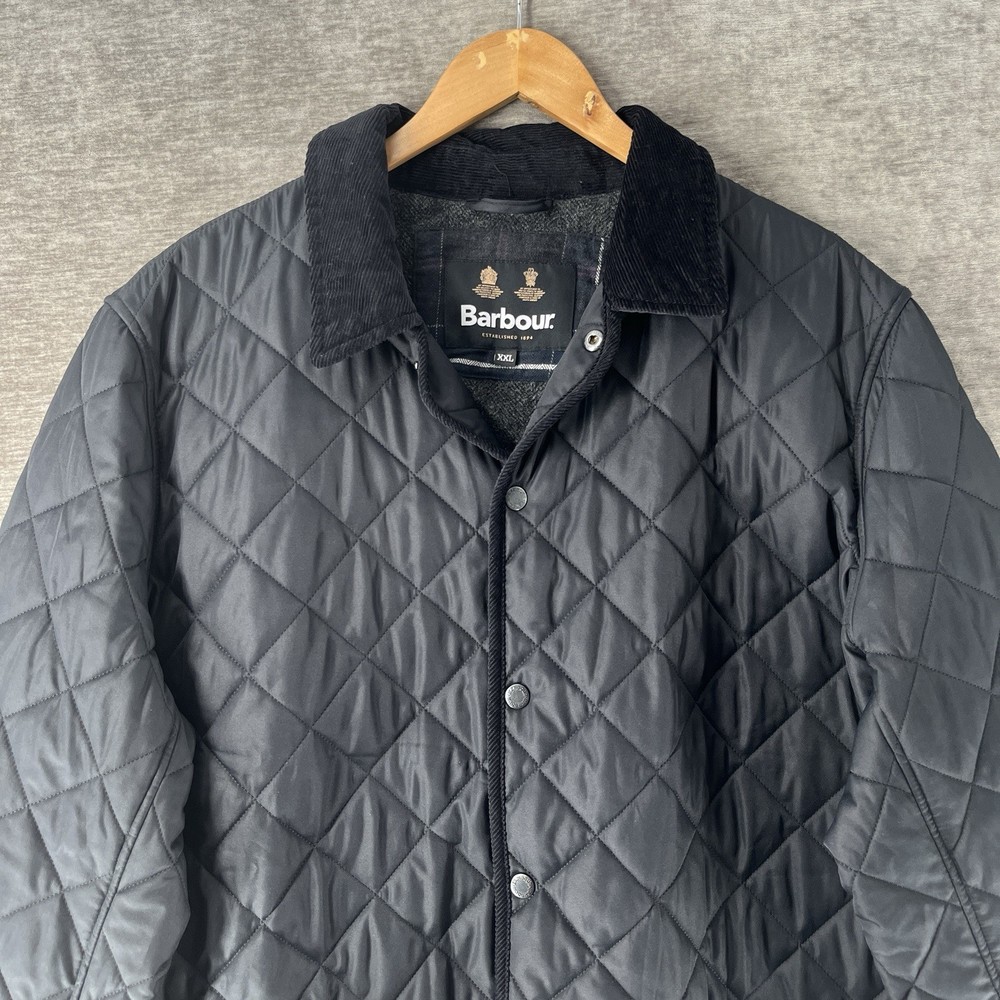 Barbour Tartan Quilted Jacket Solid Black Men’s Size 2XL Pockets Corduroy Collar
