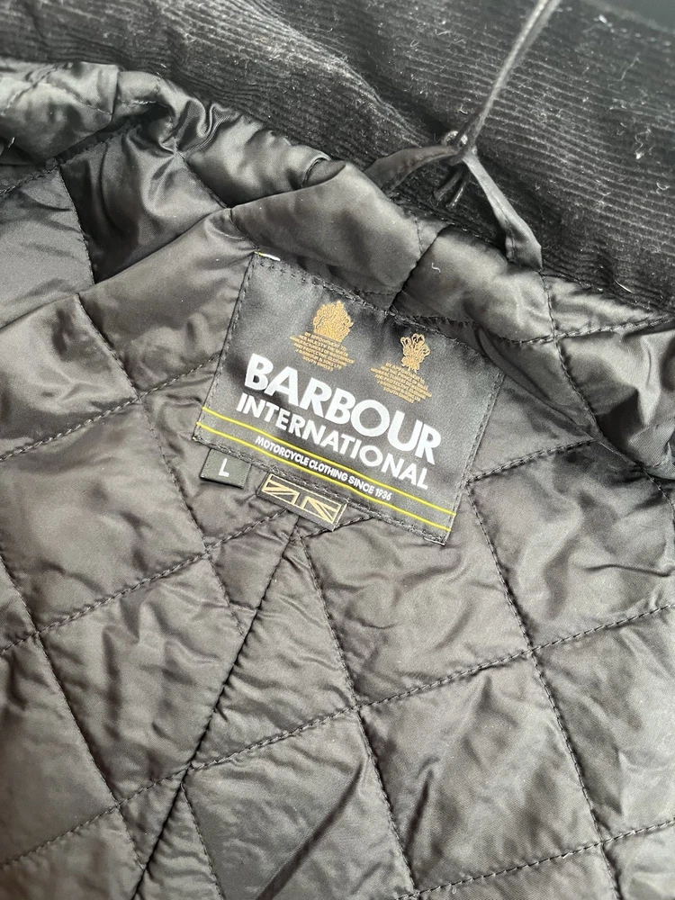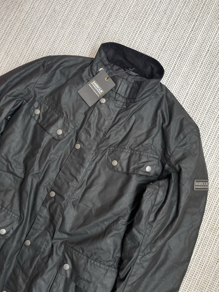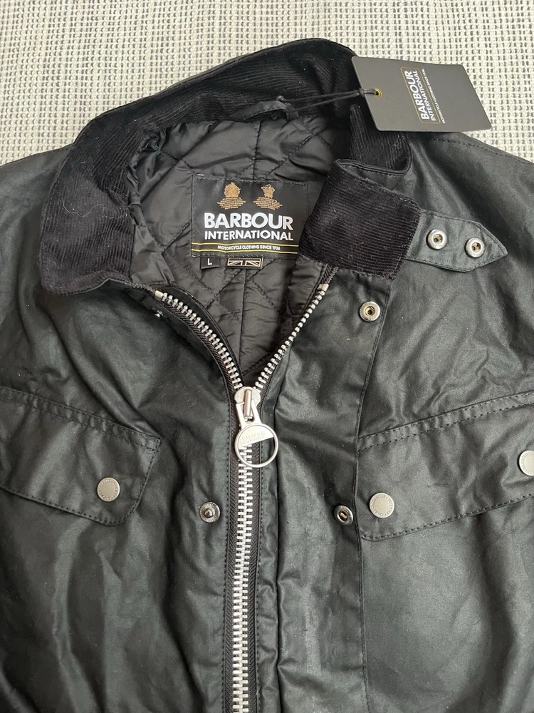 Country/Region of Manufacture: United Kingdom Model: Barbour Tourer Duke Fit: Classic Fabric Type: Wax Theme: Outdoor, Biker, Classic, 90s, Designer Style: Biker Closure: Zip, Snap, Button Lining Material: Polyamide Size: L Colour: Black Accents: Zip, Logo, Button Brand: Barbour Season: Autumn, Spring, Winter Size Type: Regular Outer Shell Material: Cotton Handmade: No Department: Men Garment Care: Sponge Wash Only Performance/Activity: Walking, Hunting, Riding Jacket/Coat Length: Mid-Length Product Line: Barbour International Features: Waxed, Pockets, Collared, Full Zip Vintage: No Collar Style: Stand-Up Type: Jacket Occasion: Casual, Travel, Business, Formal Pattern: No Pattern
