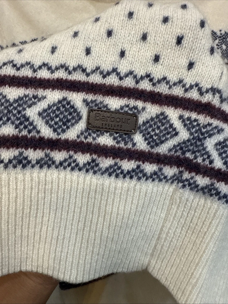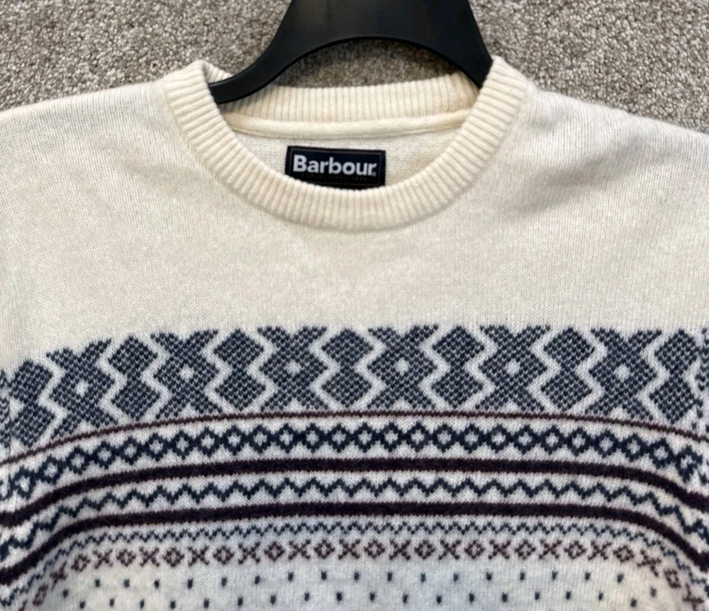 Very good, no holes or stains. Pre-Owned, Ships USPS Ground Advantage. BN4 Barbour 100% Wool Knit Nordic Fair Isle Crewneck Sweater Size Medium