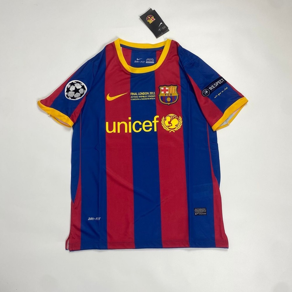 The Barcelona 10/11 Home Jersey Short Sleeve featuring Messi #10 is an officially licensed soccer jersey for FC Barcelona fans. This jersey, made in China, is designed for men with a multi-color design representing the team. It has a capacity of 15 oz and is perfect for showing support for Messi and his team on the field or in the stands.