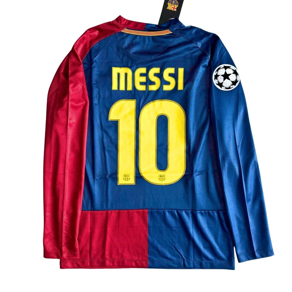 About: Relive the glory of the historic 2008-2009 treble-winning season with this iconic FC Barcelona home jersey. This rare long-sleeve edition commemorates the 2009 Champions League Final in Rome, featuring the detailed match-day embroidery on the chest. Adorned with the legendary Messi #10 on the back, this piece captures the moment the world's greatest player secured the trophy with his famous header in Italy. Designed with a classic blue and red half-and-half motif, the jersey includes the official Starball patch on the sleeve and the unicef sponsor across the front. Crafted from breathable, moisture-wicking performance fabric with professional-grade stitching, it offers both comfort and durability for fans and collectors alike. Whether you're looking for the perfect holiday gift for a soccer enthusiast or a standout addition to your sports memorabilia collection, this jersey is a timeless tribute to one of football's most dominant eras. A must-have for shoppers seeking high-quality fan apparel that evokes pure nostalgia. Details: Condition : Brand new with tags Style : Fan version Football shirt Details : Stitched team crest and logo / Player name and number are pressed Size : Unisex adults - Loose fit Shipping: Free shipping worldwide Processing within 2 business days Get it delivered within 5-10 Business days. Tax free: All taxes are covered, what you see at checkout is the final price you pay. Returns: We got you covered, Simply reach out to us within 30 days of delivery for a smooth solution. Take care of your jersey: Wash: Inside out, cold water (30°C max), and a delicate cycle. Detergent: Mild liquid only; no fabric softener or bleach. Dry: Air dry only on a hanger. Never use a dryer. Iron: Steamer only, or iron inside out on the lowest heat with a towel barrier. Storage: Hang it up to avoid creasing the logos/printing.
