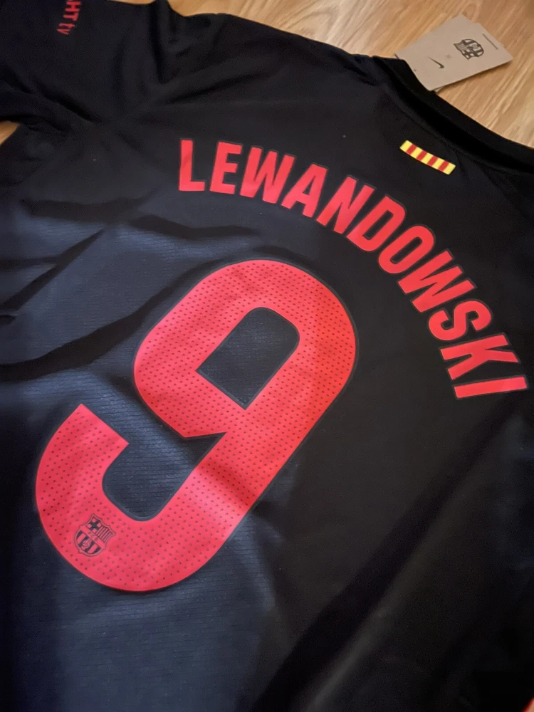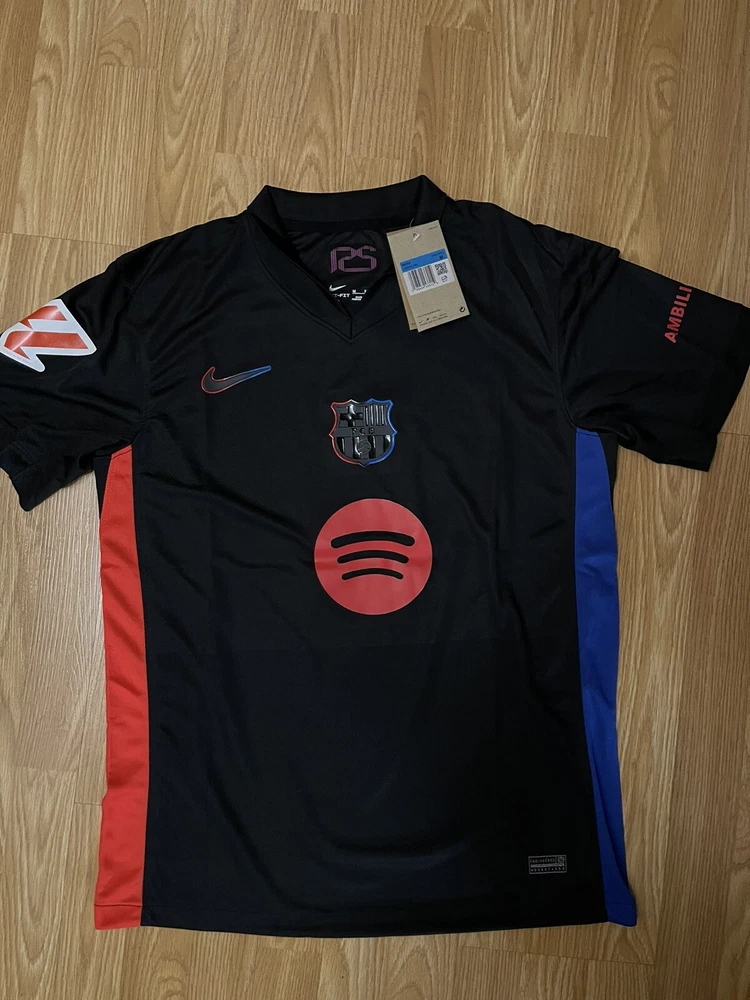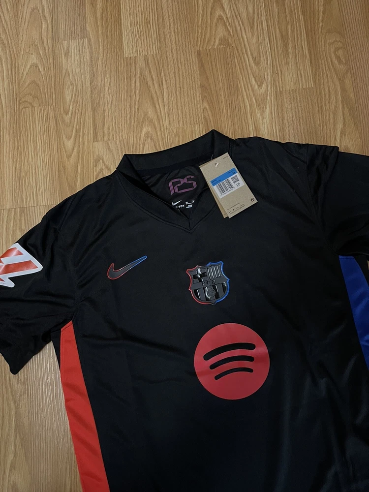 Show your support for FC Barcelona with this beautiful 24/25 Away jersey. Made with high quality materials, this jersey is perfect for any soccer fan. It features the team's iconic colors and logo, as well as your favorite player's ‘Lamine Yamal 19’ name and number. The jersey is available in size Small and is perfect for anyone who wants to show their love for the team. Whether you're watching the game at home or cheering on the team at the stadium, this jersey is a must-have for any true fan. This is a REPLICA jersey. This is a replica jersey. Replica jersey DOESNT mean it’s FAKE. A replica jersey is a fan-friendly, officially licensed jersey that is inspired by the jerseys worn by professional athletes. Replica jerseys are designed for comfort and everyday wear