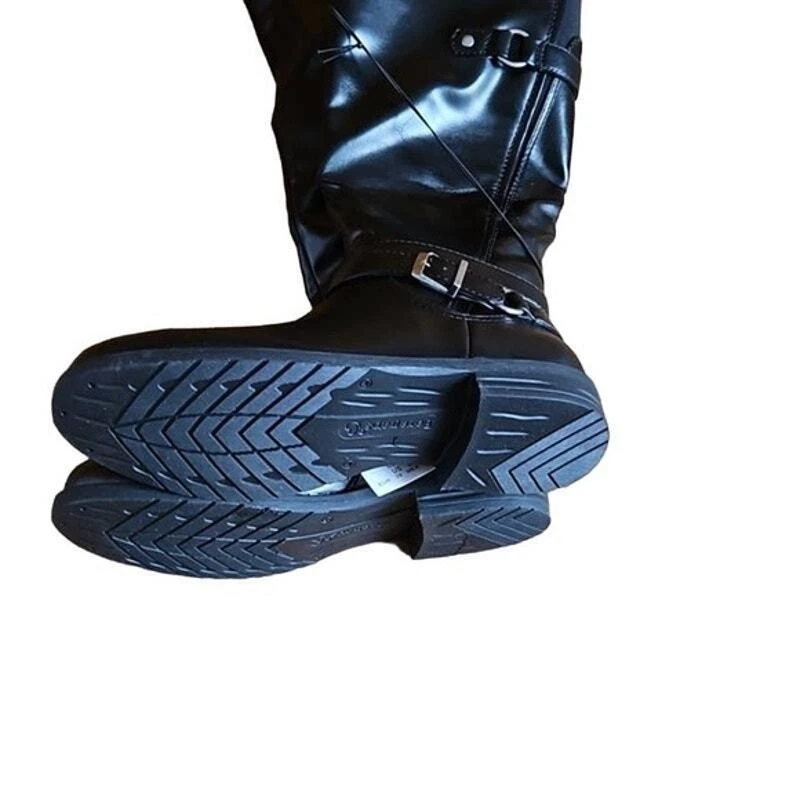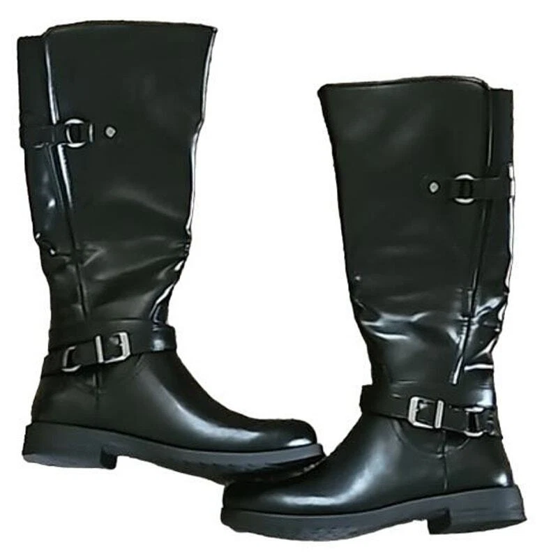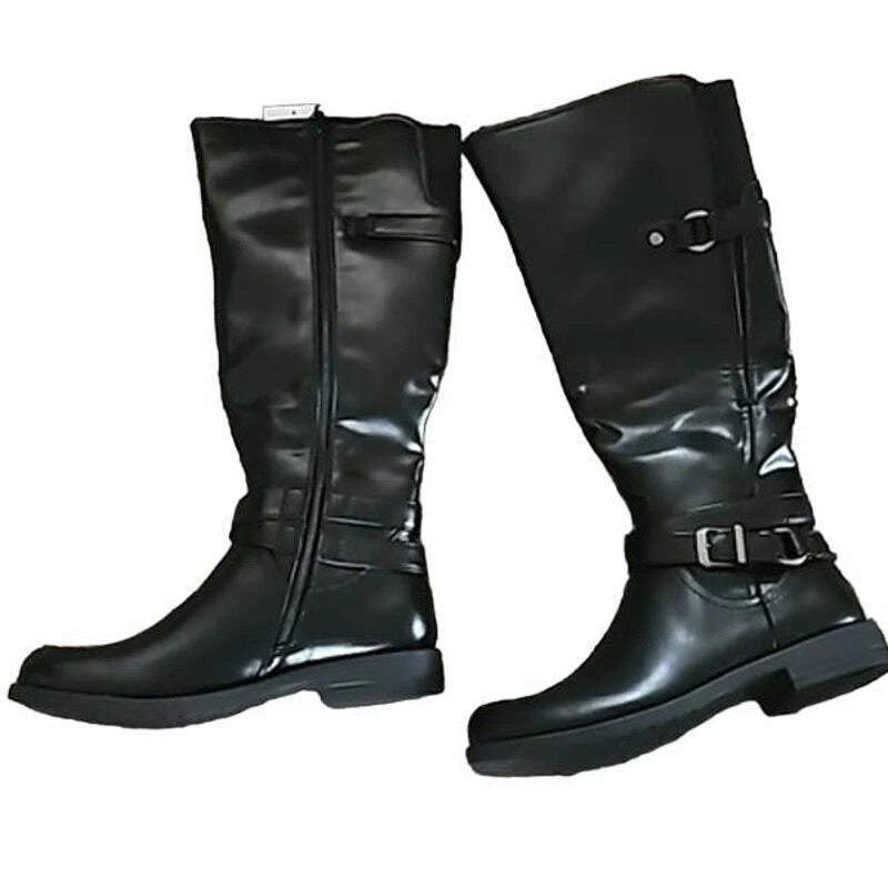 Step out in style with these Baretraps Women's Carmella Riding Boots. Featuring a classic riding boot silhouette and stylish buckle details, these boots offer both fashion and function, making them a versatile addition to your fall and winter wardrobe Durable faux leather upper with a soft lining for comfort Features a zip-up closure for easy on and off, decorative buckle straps for a stylish touch, and a low stacked heel for comfortable all-day wear Ideal for pairing with jeans, leggings, or dresses; perfect for casual outings, work, or weekend adventures Cushioned insole Flexible outsole Inside zipper closure for ease of entry Elastic at topline for better fit 1.25" Heel height Made in China Upper: 91% Polyurethane | 9% Textile elastic Lining: 100% Acrylic Outsole: 100% Thermoplastic rubber 14.5" shaft height 14.25" shaft circumference #Baretraps #RidingBoots #Carmella #BuckleBoots #ZipUpBoots #Size6 #FallFashion #ComfortAndStyle #CasualChic #VersatileWear
