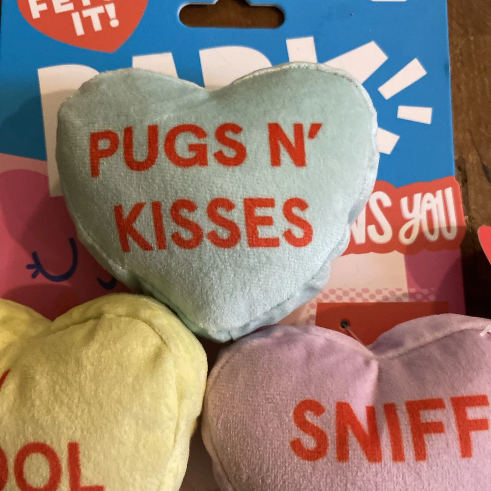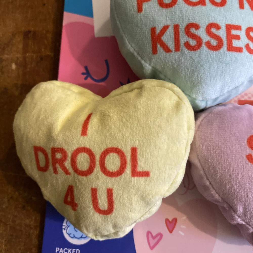 Bark Fetch It I Chews You 3 Squeaker Hearts Dog Toy XS/S 0-20lbs Valentine’s Day. New