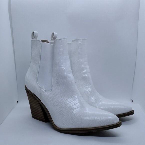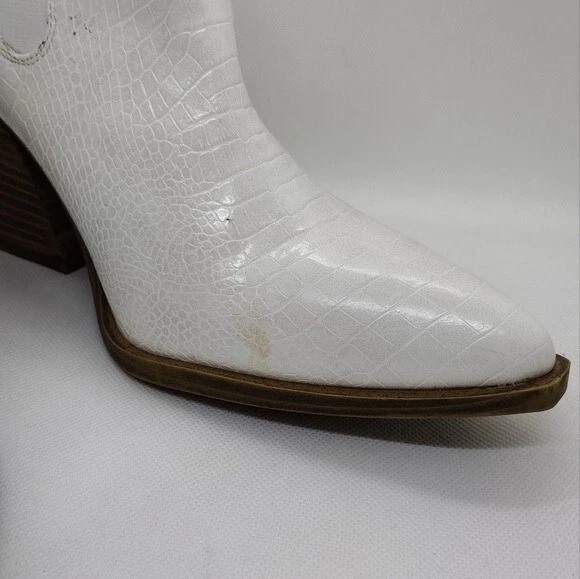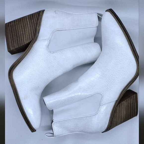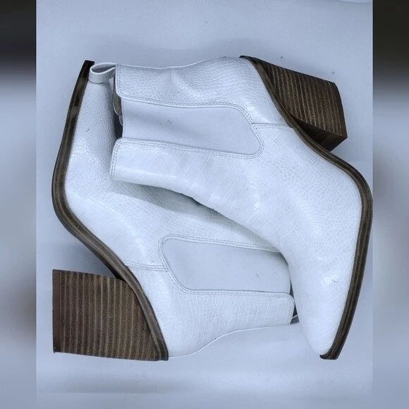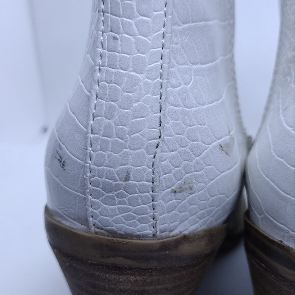 Features White Snakeskin Stacked leather block Western Rodeo Cowgirl Pre-Loved Condition Some light marks, please check all pictures. SIZE 10 Measurements Height: 4" Please check to be sure of fit Smoke Free Pets Free Please feel free to contact me for any questions or offer Bundle Discounts Offered Fast Shipping *41118-2046-24*