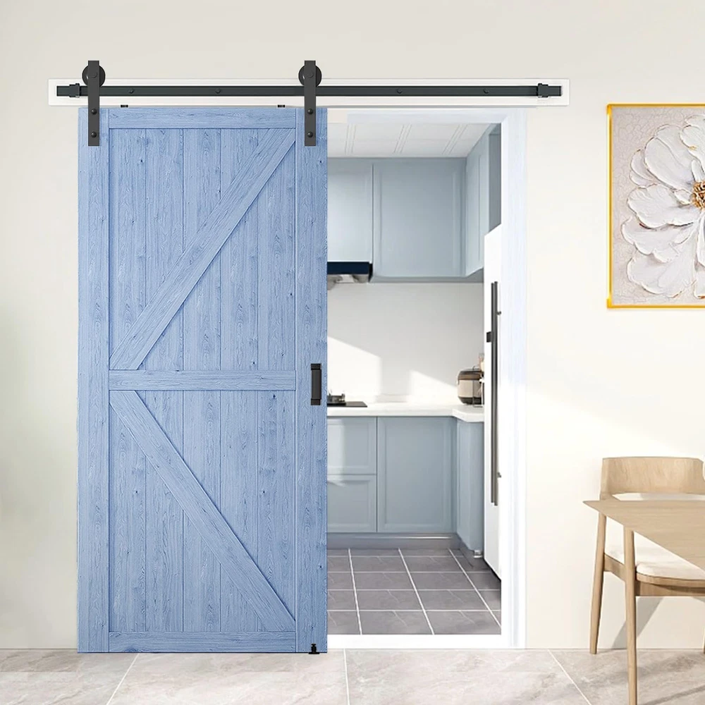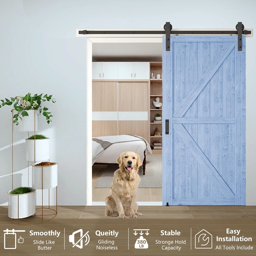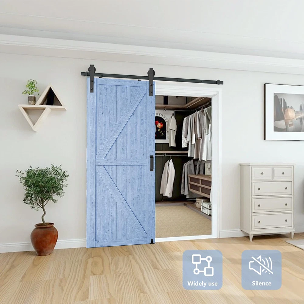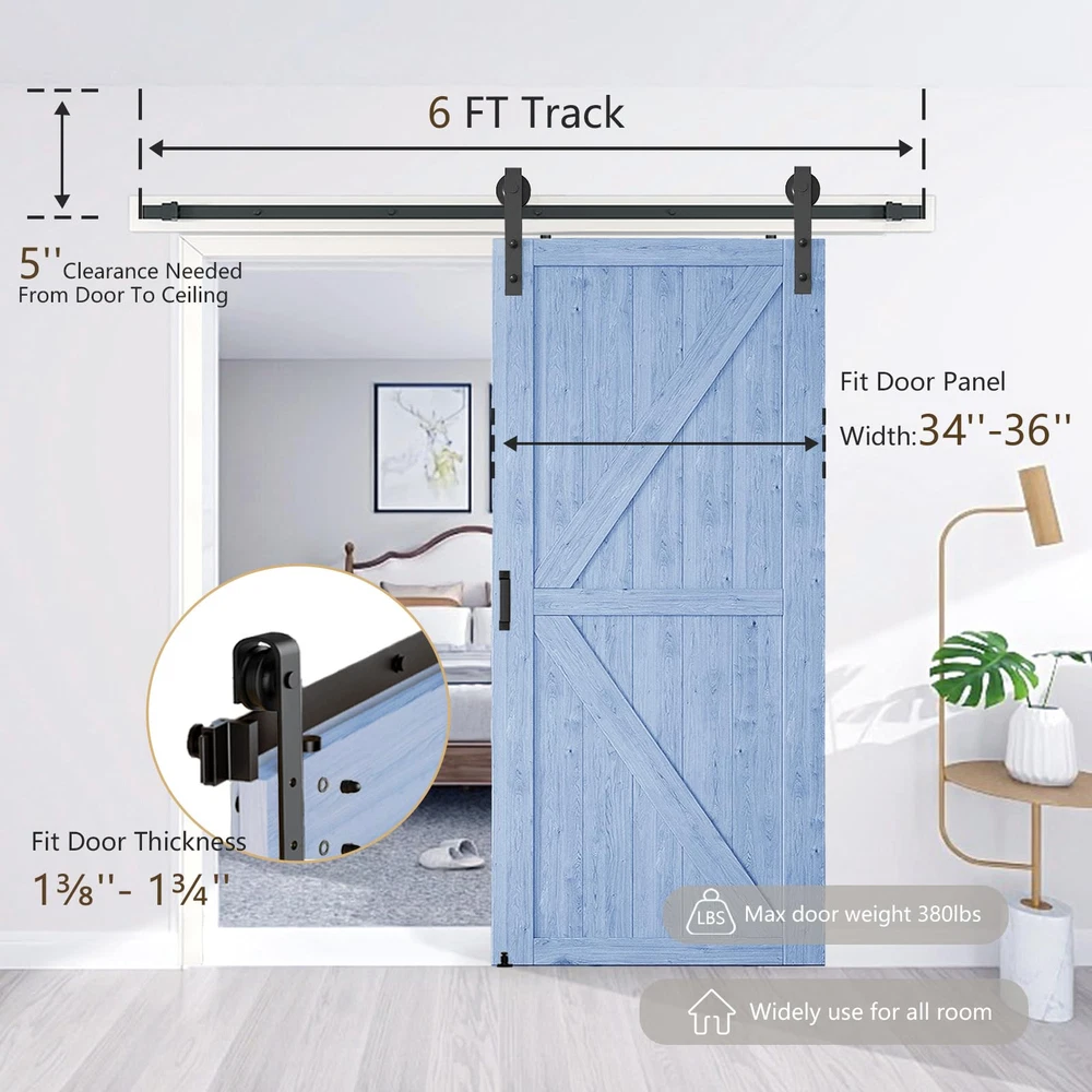 ▶【Heavy Sturdy and Reliable Hardware kit】:Our barn door hardware kit is built to last, featuring high strength industrial grade tracks and J pulleys that can easily support loads of up to 380 lbs wooden door. It is suitable for doors panels with a thickness ranging from 1 3/8 - 1 3/4 inches, ensuring a strong and secure installation. We offer 5ft, 6ft, 6.6ft 9ft, 8ft soft close barn door hardware kit for single barn door and 10ft 12ft double slider track for double barn door hardware kit. ▶【Smooth and Quiet Operation Sliding Door Track kit】: Two anti-jump disks and an up-side-down T-shaped guide, our barn door hardware provides stability and prevents swinging as the door moves along the rail. The floor-mounted installation adds an extra level of stability to the sliding door system, ensuring that your door glides smoothly along the track without any wobbling or jumping. Enjoy a smooth and quiet sliding experience, adding a touch of modern convenience to your space. ▶【Versatile Barn Door Kit Application】: Whether you have cement walls or wood walls, our barn door hardware kit is designed to accommodate both. Its rustic style makes it a perfect fit for various indoor and outdoor settings, including kitchen, bedroom, shower room,laundry,dressing room, storehouse,clubs, pubs, while its waterproof and rustproof construction also makes it suitable for barns, garages, stables, and more. ▶【Complete Sliding Barn Door Hardware kit】: With heavy duty rails included and all the necessary in the Barn Door Accessories Pack for easily install the track on the floor allowing for smooth and effortless movement of your barn door. It consists floor-mounted design rails, 6 wall spacers, 2 hangers and handles, 1 Adjustable rolling door guide,1 T-shape door guide, 2 door stopper, 1 hook, 2 rubber ends 1 hex key. You'll have everything you need to set up your barn door system (door not included) ▶【Ideal for Multiple Rooms】: Embrace the modern twist on the classic barn door design and enjoy the space-saving benefits it offers. This versatile kit allows you to open up multiple rooms without any hassle. Perfectly suited for hallway, living rooms, bedrooms, storage, bathroom and study room even farmhouse -make the right choice for your house and elevate your living spaces. Its sleek and modern design seamlessly blends with any decor style. Even use for hanging door.