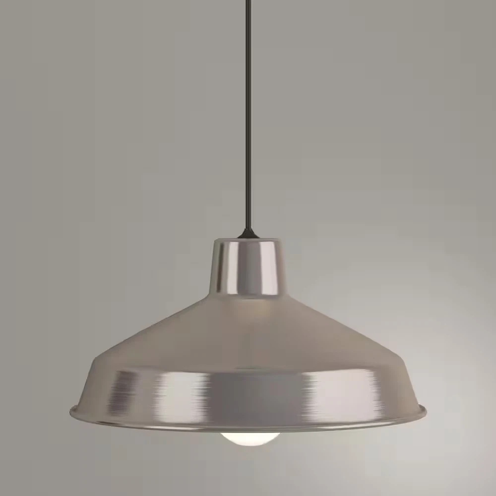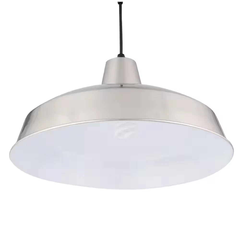 Store New Arrivals Add to Favorite View Feedback Contact Barn Pendant Light Industrial Rustic Style Farm Warehouse Adjustable Hanging Description Chandelier/Pendant Design Shaded Compatible Bulb Type CFL,Incandescent,LED Damp/Wet Rating Dry Rated Decorative Accents No Decorative Accents Dimmable Capability Dimmable Features Adjustable Hanging Length,Dimmable,Sloped Ceiling Adaptable Fixture Color Family Silver Fixture Color/Finish Brushed Nickel Fixture Material Metal Fixture Shape Dome Hanging Device Wire Included Mounting Hardware Included Light Bulb Base Code E26 Light Bulb Type Included No Bulbs Included Light Direction Down Location Use Dining Room Max Bulb Wattage (W) 100 W Minimum Hanging Length (in) 74.75 in Number of Lights 1 Power Source Hardwired Product Weight (lb) 2.72 lb Recommended Light Bulb Shape A-Shape Recommended Light Bulb Shape Code A19 Returnable 90-Day Shade Color Family Silver Shade Material Other Shape Bowl Style Rustic Volt (v) 120 Manufacturer Warranty Five Year Limited Warranty Chain Length (in) 66 in Fixture Depth (in) 16 in Fixture Height (in) 8.7 in Fixture Weight (lb) 2.72 lb Fixture Width (in) 16 in Maximum Hanging Length (in) 74.75 in Mounting Plate Height (in) 1.14 in Mounting Plate Width (in) 4.88 in Uses one 100-Watt bulb , sold separately Adjustable hanging length of up to 78 in. Attractive brushed nickel finish will work in a variety of spaces The Hampton Bay 1-Light Brushed Nickel Warehouse Pendant is ideal for a wide variety of spaces and decor. Featuring an attractive brushed nickel finish, this functional and stylish pendant will provide plenty of bright and even illumination in living rooms, garages, dens and wherever your imagination leads you. Easy to maintain and easy to install, pair with other brushed nickel pieces from Hampton Bay for a custom and polished look. Adjustable hanging length of up to 74.75 in. Brushed nickel finish complements a variety of decor styles UL listed Uses one 100-Watt incandescent light bulb (not included) Hardware included for ease of installation Pendant interior is white for better light distribution Can also use an LED or CFL equivalent bulb ABOUT US We offer the best prices around on high quality products. Our E-store includes tools, general home, garden items and more. SHIPPING We are always working hard to ensure your package arrives as soon as possible. Please understand that some factors like weather, high postal traffic, and the performance of shipping companies are outside of our control. We offer free shipping to the lower 48 states and ship within 4 business days of payment, usually sooner. We do not accept P.O. Boxes. Please provide a physical address. RETURNS We offer a 30-Day Return Policy on items which you are not completely satisfied with. You have the option for a full-refund or an exchange of the item. No returns are available on items shipped outside of the USA. PAYMENT We accept PayPal. CONTACT US This page content is yet to come Please ad us to your favorite seller and visit again later Thank You CUSTOMER SATISFACTION We try our very best to make sure every customer is completely satisfied. If there's a problem, message us! We're happy to help. WE ACCEPT Copyright © 2017 AutoDs. | All Rights Reserved