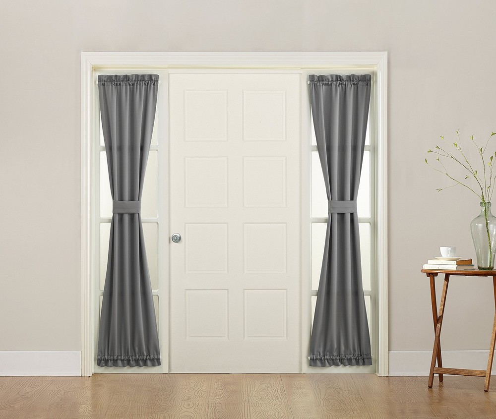 Ideal solution for front doors, includes a tie-back for optimal light control Room Darkening technology blocks out some unwanted light while enhancing privacy Energy efficient design reduces energy lost through your windows by up to 25% Thermal properties help keep summer heat and winter chill out of your home Noise reduction up to 25% helps you get a sounder, more uninterrupted sleep Built-in rod pocket fits curtain rods up to 1.5" in diameter