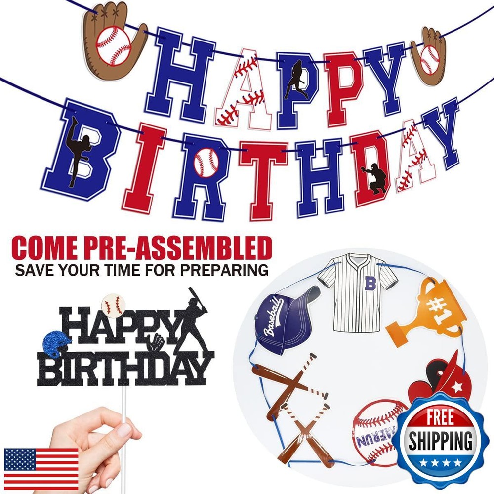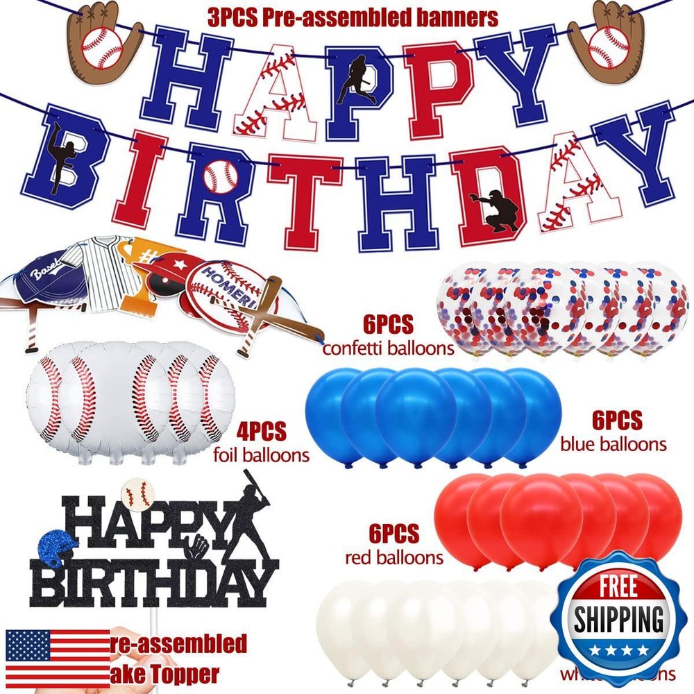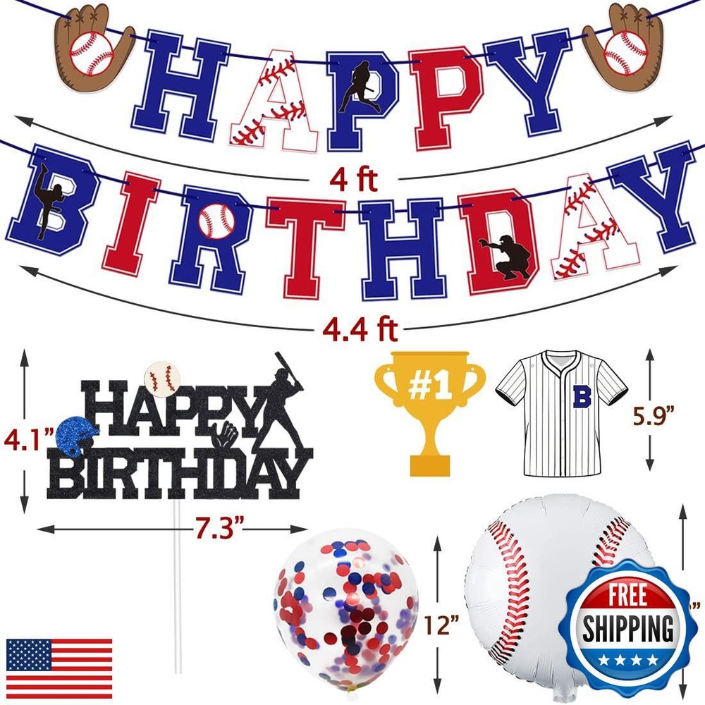 Baseball Birthday Party Decorations Supplies for Boys - Baseball Theme Happy Birthday Banner Cake Topper and Balloons Party Pack - Sports Game Themed Birthday Baby Shower Photo Props Supplies Features Looking for something special to add more atmosphere to your BASEBALL-themed baby shower or birthday party? Our baseball happy birthday party pack will be your best choice! Perfect for Baseball, sport, games day, or any sport-themed birthday party photo prop and any events you want. Nothing is better than our kit with a variety of baseball elements. Let's thrill your guests wherever the celebration occurs! PRE-ASSEMBLED - Our baseball happy birthday banners are made of premium cardstock with quality colorful printing. The cake topper is made of double-sided glitter card stock with food-grade paper sticks, glitter won't wind up on your cake. Both cake topper and banners are pre-assembled, and NO DIY is required. Help you effortlessly create a beautifully unique party for your occasion GORGEOUS PARTY PACKS - You'll get 1pcs CAKE TOPPER(measures 7.3" x 4.1"), 3pcs BANNERS, 6pcs blue balloons(12"), 6pcs red balloons(12"), 6pcs white balloons(12"), 6pcs confetti balloons(12") and 4pcs foil baseball balloons(18"), 32pcs in total. ORIGINAL DESIGN BY Sumjollity - All our party supplies have been carefully handmade and crafted. We specially design multiple elements(baseball, sports suit, player, etc.), adding more fun and making your party more interesting GUARANTEE - If you are unsatisfied with your purchase of our baseball-themed birthday party packs, you can have a 100% refund without conditions Shipping Free & Fast Shipping: We offer free shipping to most of the USA with a normal delivery time of 3-7 days. However, due to the current situation, additional delivery time (up to 3 weeks) may be required for some items. Alternative Carriers: We may use alternative carriers (e.g., USPS, FedEx, UPS) to ensure your package arrives safely and on time. Due to the use of multiple carriers, we are unable to provide a tracking number automatically. Handling Time: Orders are processed and shipped within 1-2 business days of receiving cleared payment. Shipping Restrictions: Shipping to Alaska, Hawaii, Puerto Rico, Guam, and other US territories may incur shipping charges or delivery restrictions. Please contact us before ordering, or your order can be refunded/cancelled. State Restrictions: Certain items may not be shipped to California due to state regulations. Contact for Tracking Updates: If you require tracking updates or have any concerns about the delivery of your order, please feel free to contact us, and we will be happy to assist you. Return Policy 30-Day Hassle-Free Returns: If you are not completely satisfied with your purchase, you can return the item for free within 30 days of receiving it for a full refund or exchange. Easy Return Process: Contact us, and we will provide you with a prepaid return shipping label and detailed instructions. No Restocking Fee: There are no restocking fees for returns. However, the buyer is responsible for return shipping costs if the return is not due to a seller's error. Refund Processing: Refunds will be processed within 1 business day of receiving the returned item in its original condition. Payment We accept all major credit cards, PayPal, and Apple Pay for your convenience. Your payment information is secure and encrypted to ensure a safe and seamless transaction. Please complete your payment within 3 days of purchase to avoid any delays in shipping. Feedback Your feedback is extremely important to us. We strive to provide the best products and customer service possible. If you are satisfied with your purchase, please take a moment to leave us a positive review. If you have any concerns or issues with your order, please contact us before leaving negative feedback. We are committed to resolving any problems and ensuring your satisfaction. Contact Us If you have any questions or concerns, please feel free to reach out to our customer support team. You can contact us through the eBay messaging system. We are available Monday to Friday, 9:00 am to 5:00 pm EST, and we will do our best to respond to your inquiry within 24 hours. Thank you for supporting our small family business!