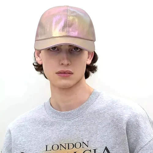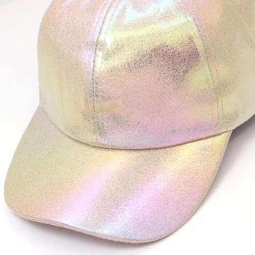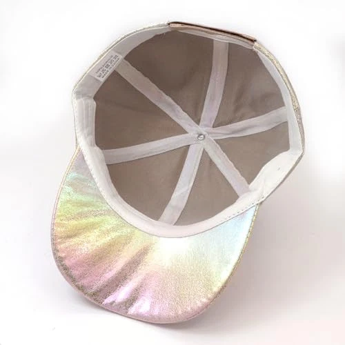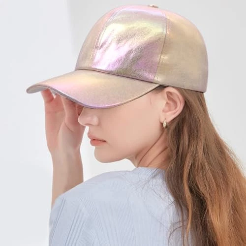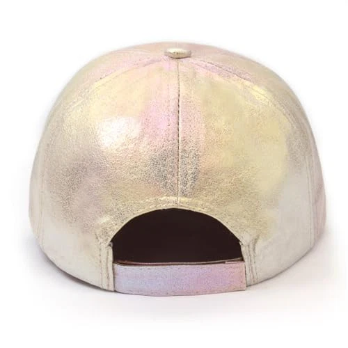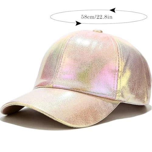 Baseball Cap for Women Men Shiny PU Leather Sun Hats Adjustable Hip Laser Beige